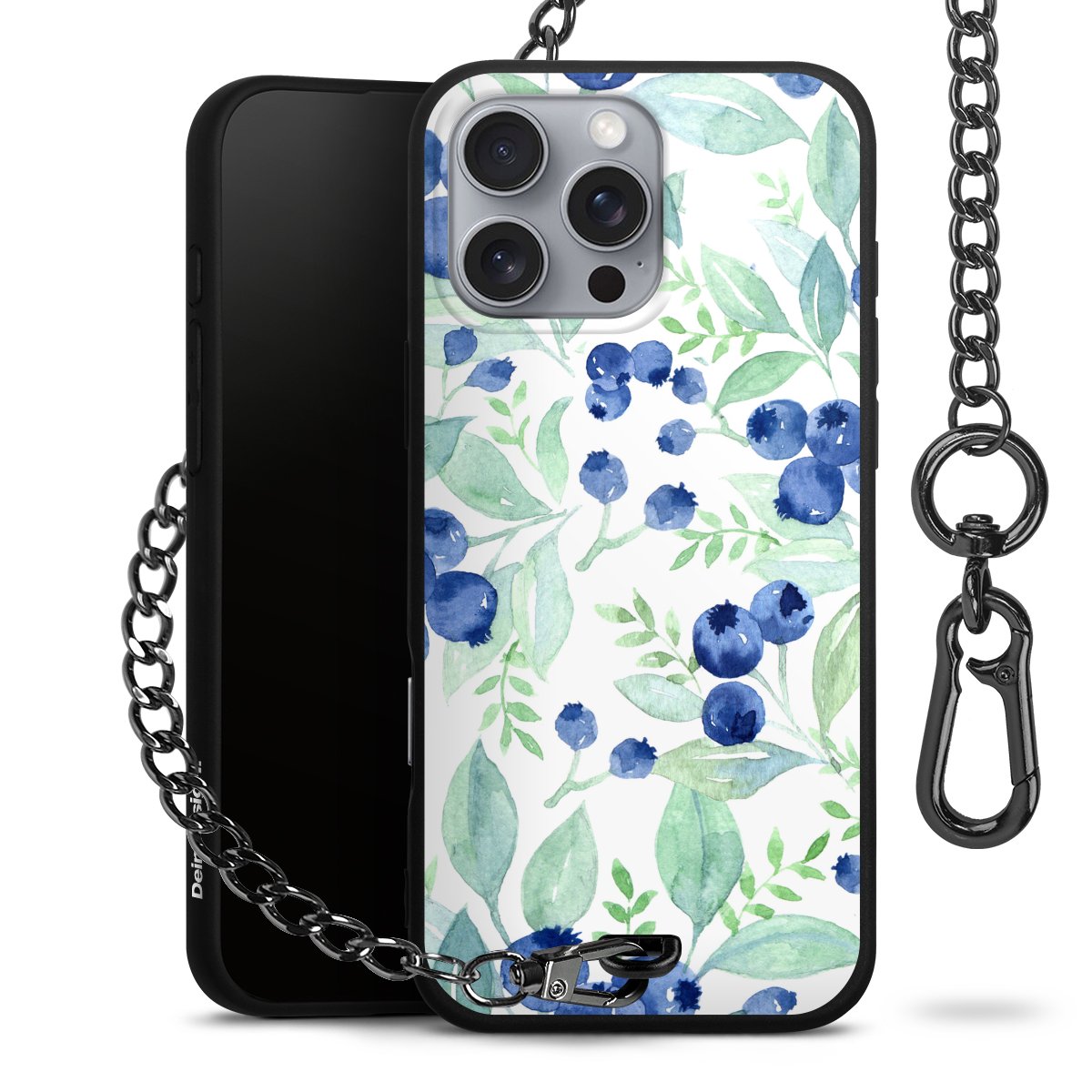 • Mattschwarze Handyhülle mit Metallkette