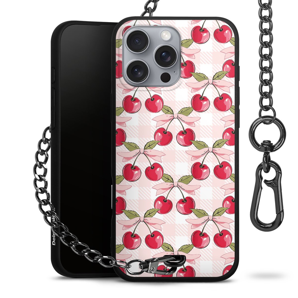 • Mattschwarze Handyhülle mit Metallkette