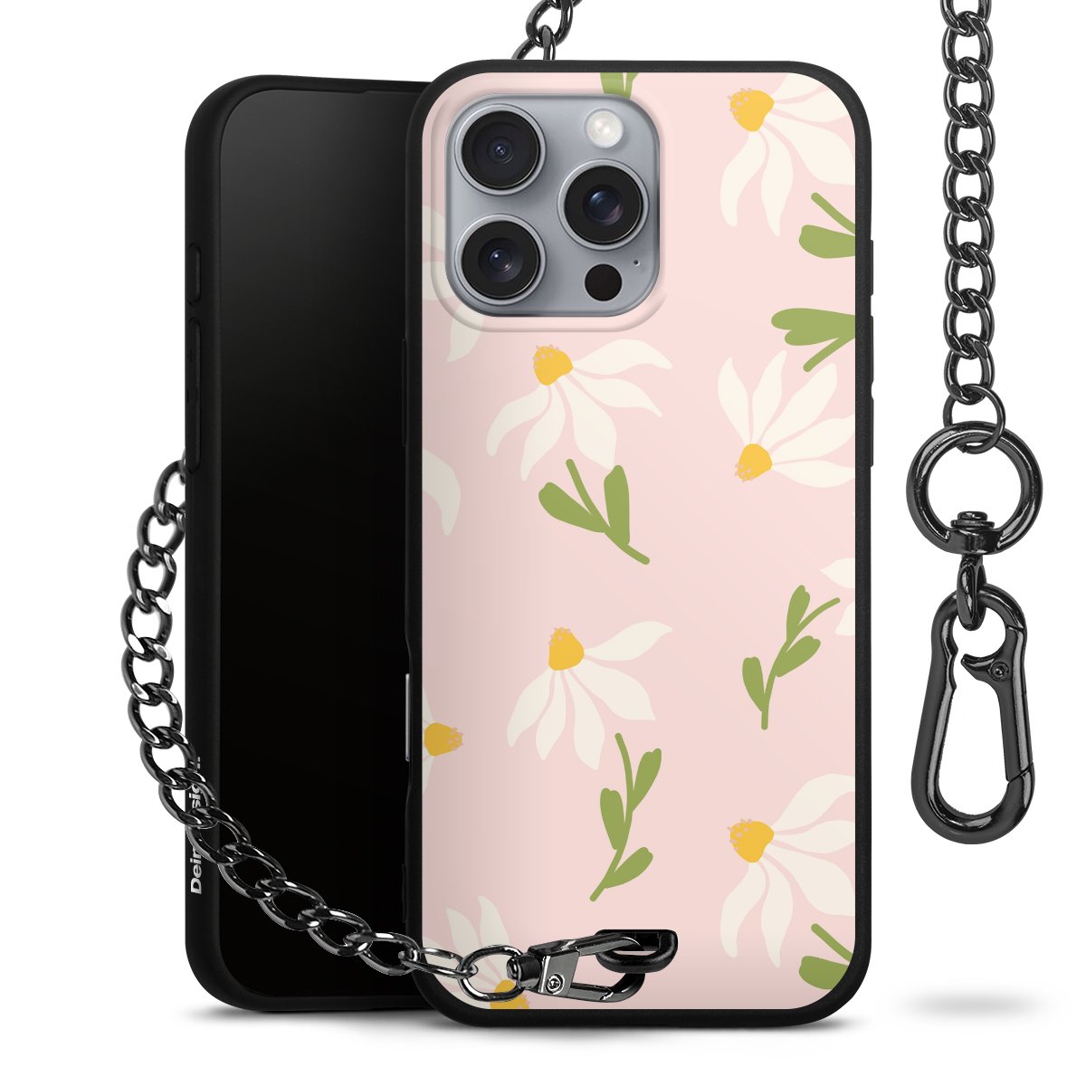 • Mattschwarze Handyhülle mit Metallkette