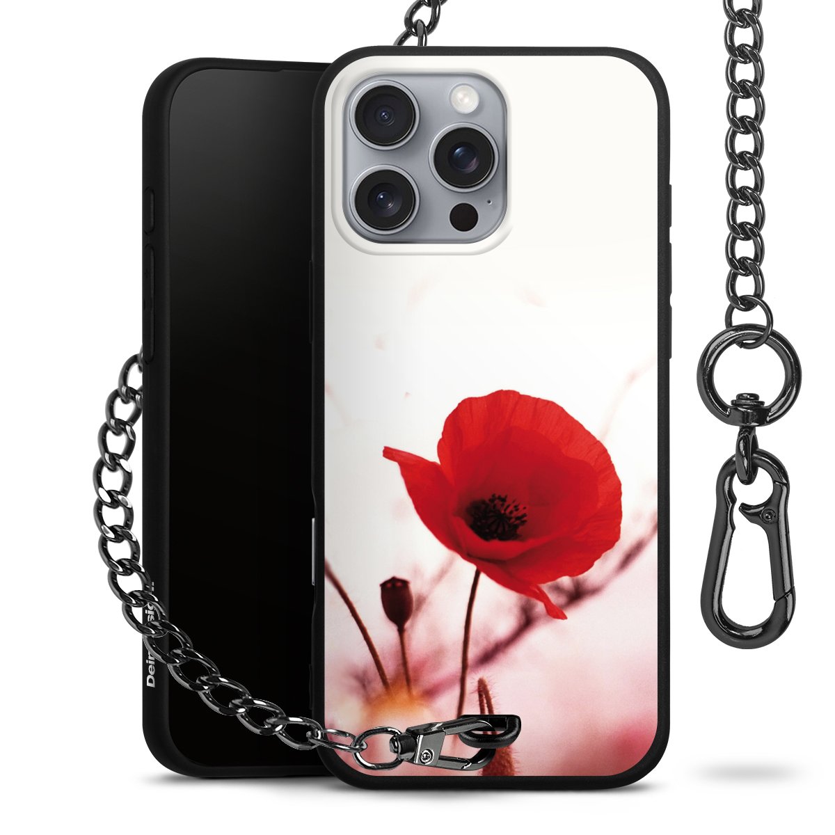 Die mattschwarze Silikon-Handyhülle besteht aus robustem TPU (thermoplastisches Polyurethan). Sie ist flexibel und schützt Dein Smartphone vor Stößen und Kratzern. Die Kette sowie der Karabinerhaken sind aus Metall in Gunmetal-Optik gefertigt. Für dieses Produkt kommen ausschließlich TÜV-geprüfte Materialien zum Einsatz.