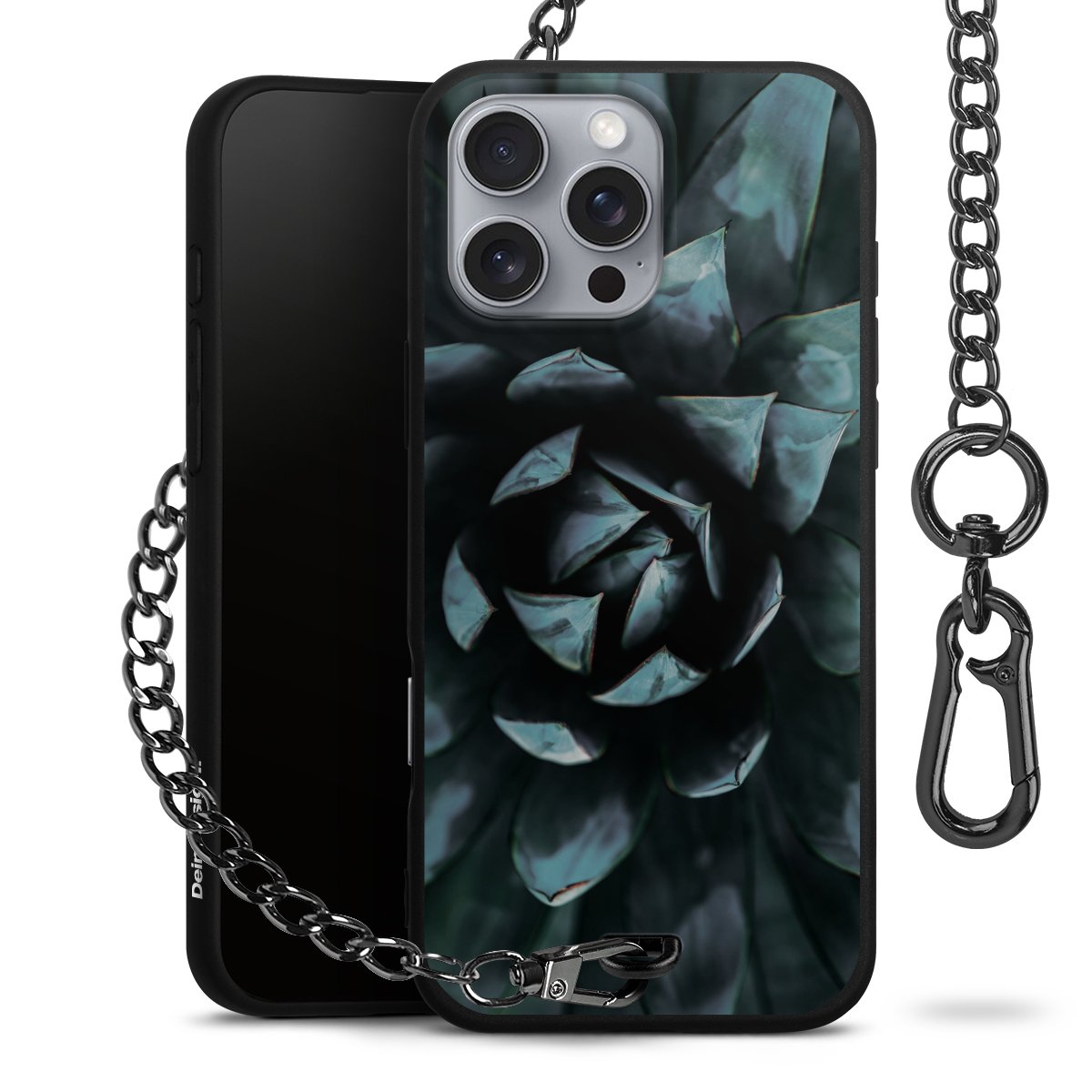 • Mattschwarze Handyhülle mit Metallkette