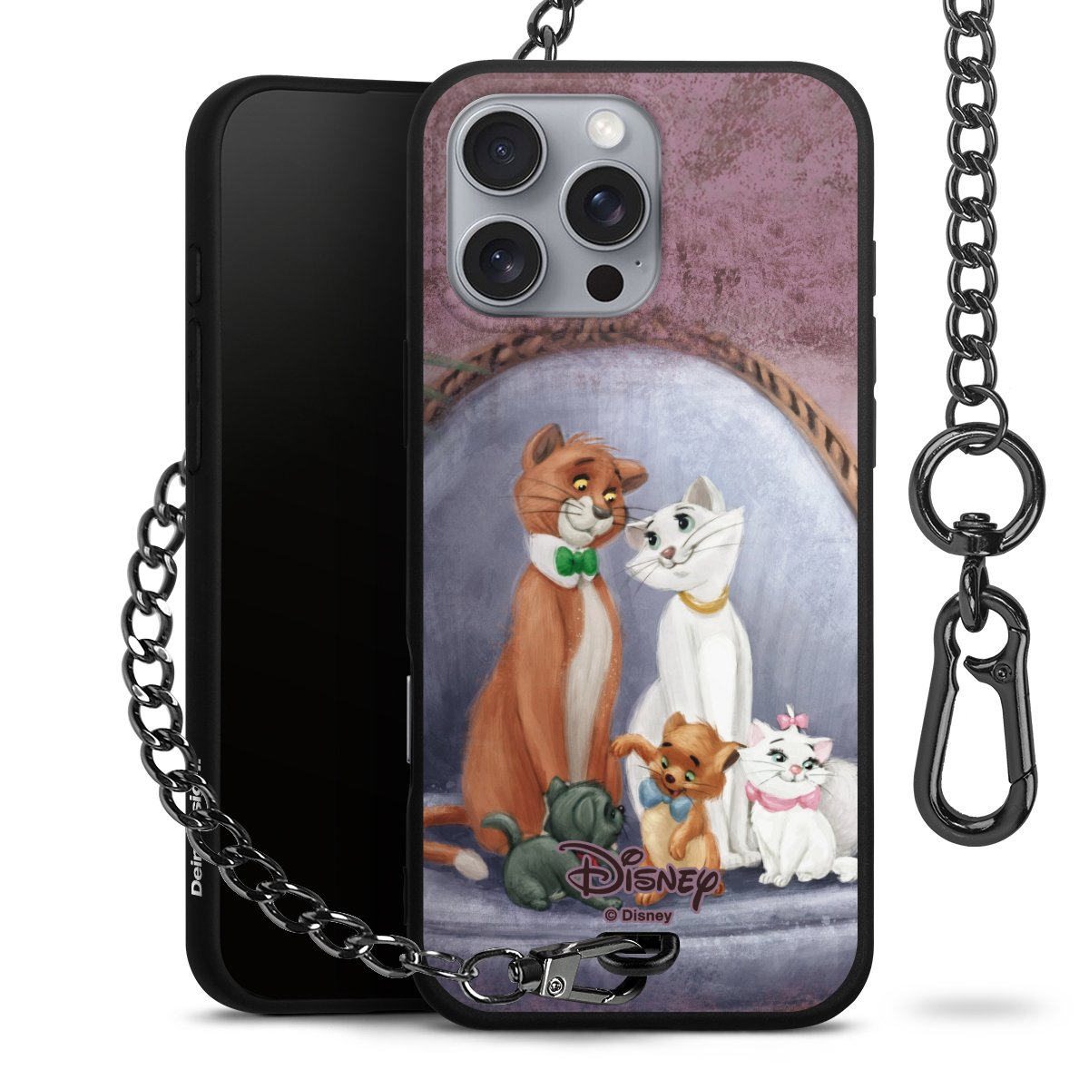 • Mattschwarze Handyhülle mit Metallkette