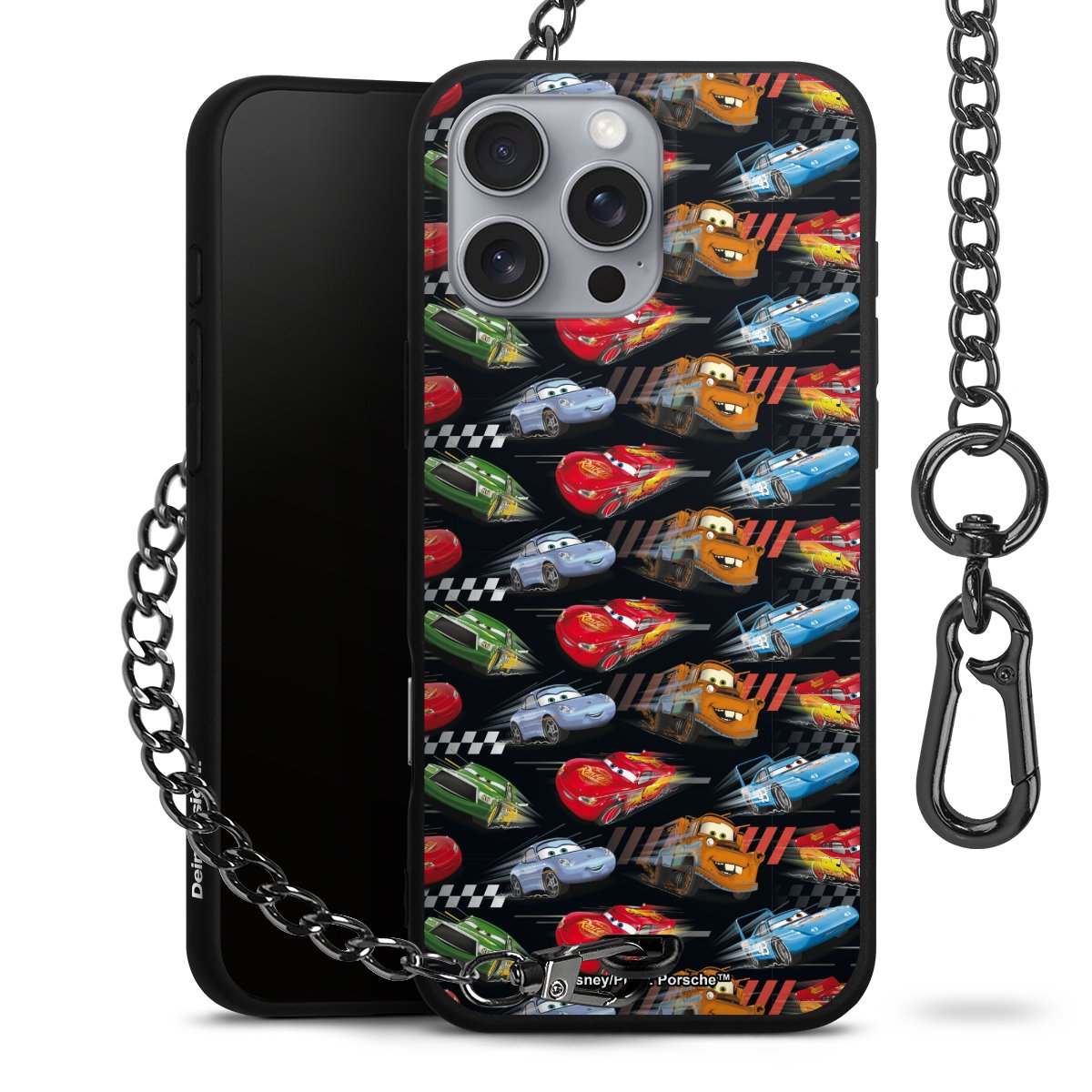 - Mattschwarze Handyhülle mit Metallkette