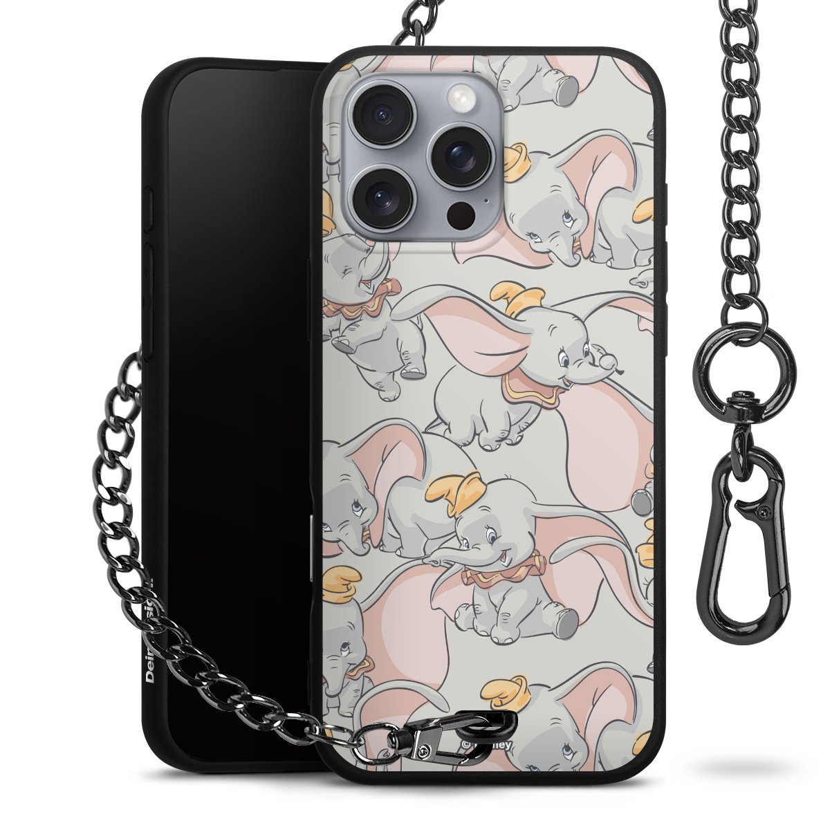 • Mattschwarze Handyhülle mit Metallkette