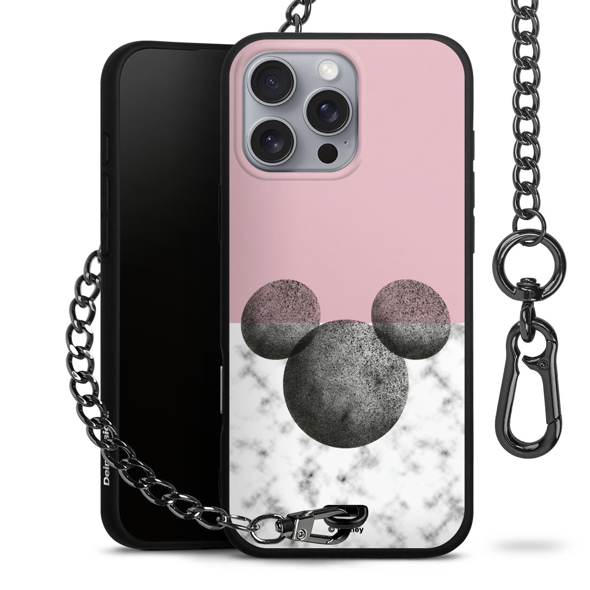 • Mattschwarze Handyhülle mit Metallkette