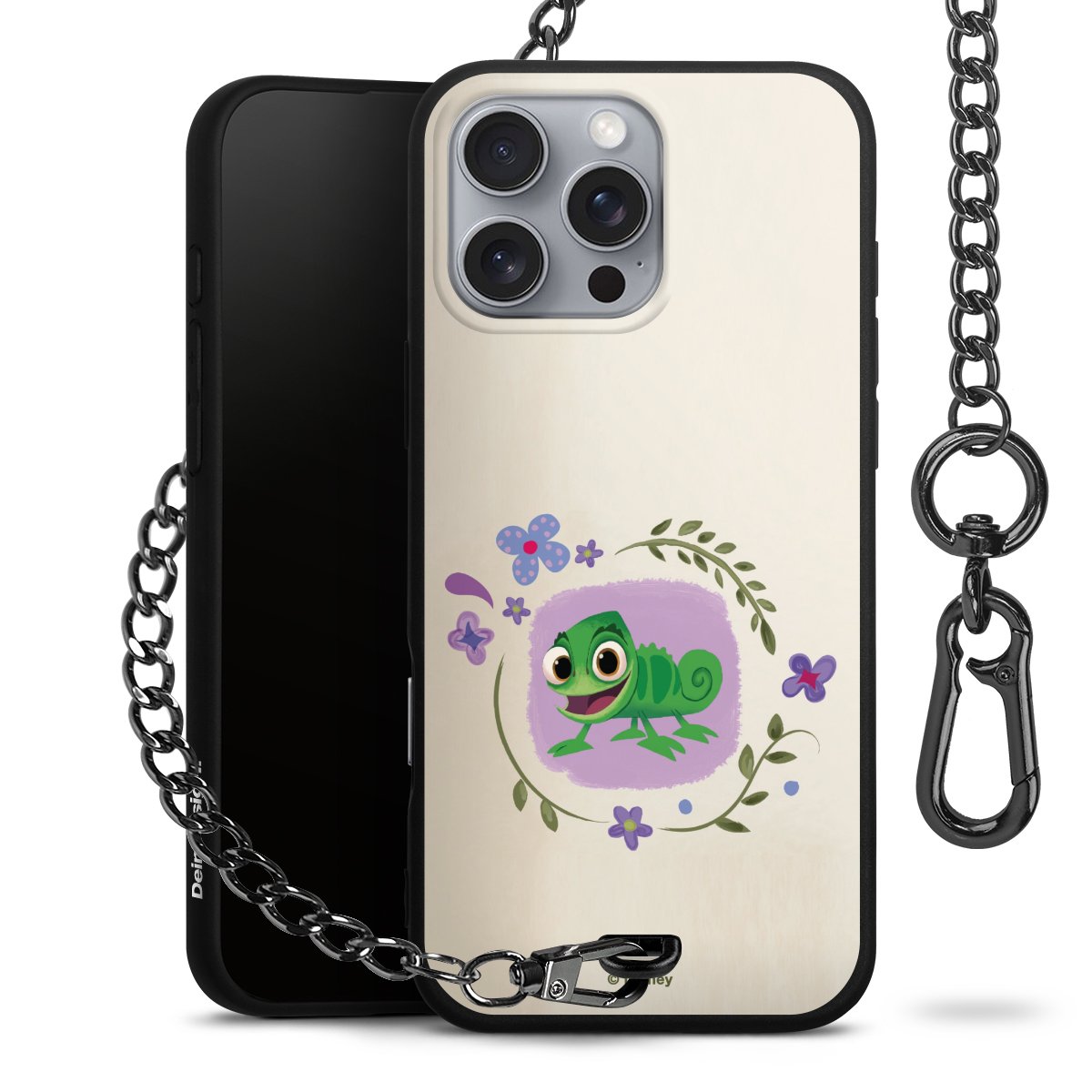 Die mattschwarze Silikon-Handyhülle besteht aus robustem TPU (thermoplastisches Polyurethan). Sie ist flexibel und schützt Dein Smartphone vor Stößen und Kratzern. Die Kette sowie der Karabinerhaken sind aus Metall in Gunmetal-Optik gefertigt. Für dieses Produkt kommen ausschließlich TÜV-geprüfte Materialien zum Einsatz.