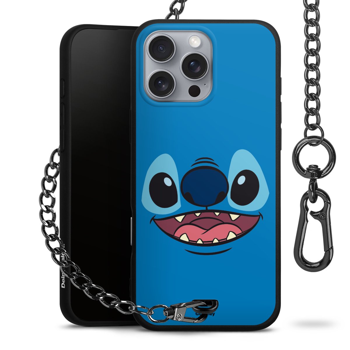 Die Handyhülle verfügt über eine mittig am unteren Rand platzierte Öse, an der die Metallkette stabil befestigt ist. Bestelle die Hülle einfach für Dein Smartphone-Modell, dann passt sie wie angegossen und Du brauchst sie bloß einmal anzudrücken. Handy in die Tasche, Karabiner an den Hosenbund – schon kann die Party starten.