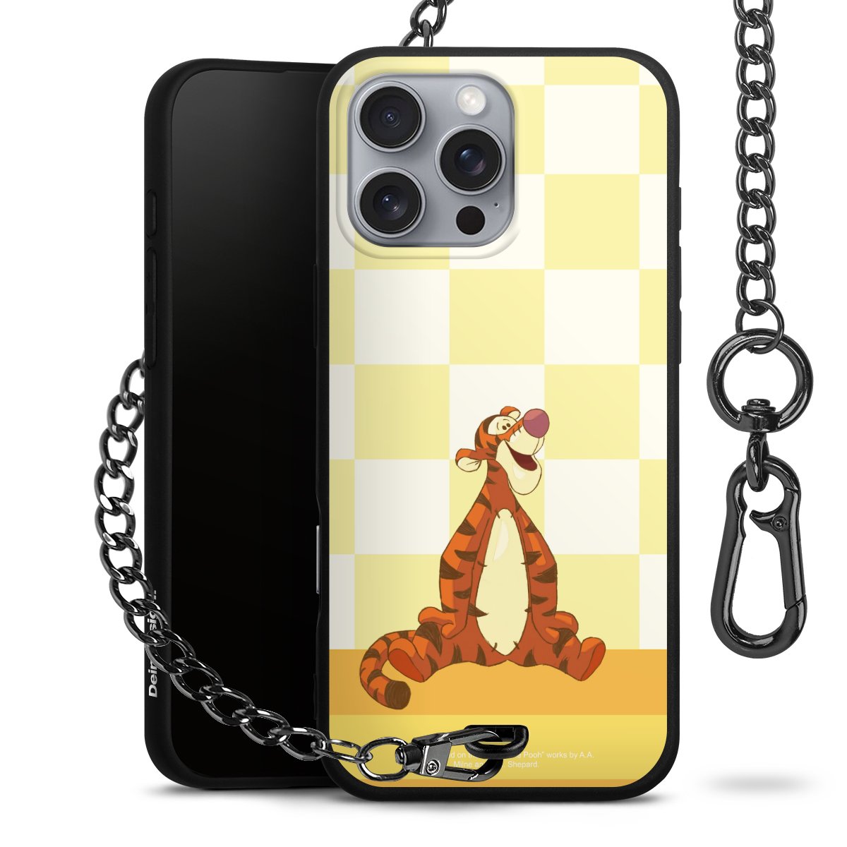 Die mattschwarze Silikon-Handyhülle besteht aus robustem TPU (thermoplastisches Polyurethan). Sie ist flexibel und schützt Dein Smartphone vor Stößen und Kratzern. Die Kette sowie der Karabinerhaken sind aus Metall in Gunmetal-Optik gefertigt. Für dieses Produkt kommen ausschließlich TÜV-geprüfte Materialien zum Einsatz.