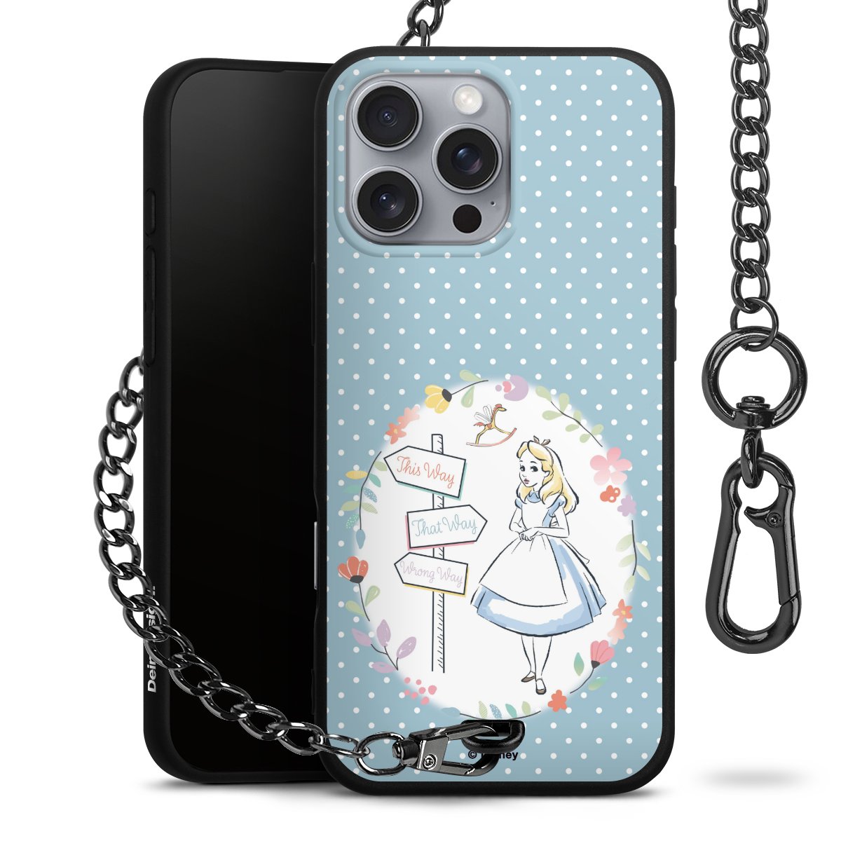 Die Handyhülle verfügt über eine mittig am unteren Rand platzierte Öse, an der die Metallkette stabil befestigt ist. Bestelle die Hülle einfach für Dein Smartphone-Modell, dann passt sie wie angegossen und Du brauchst sie bloß einmal anzudrücken. Handy in die Tasche, Karabiner an den Hosenbund – schon kann die Party starten.