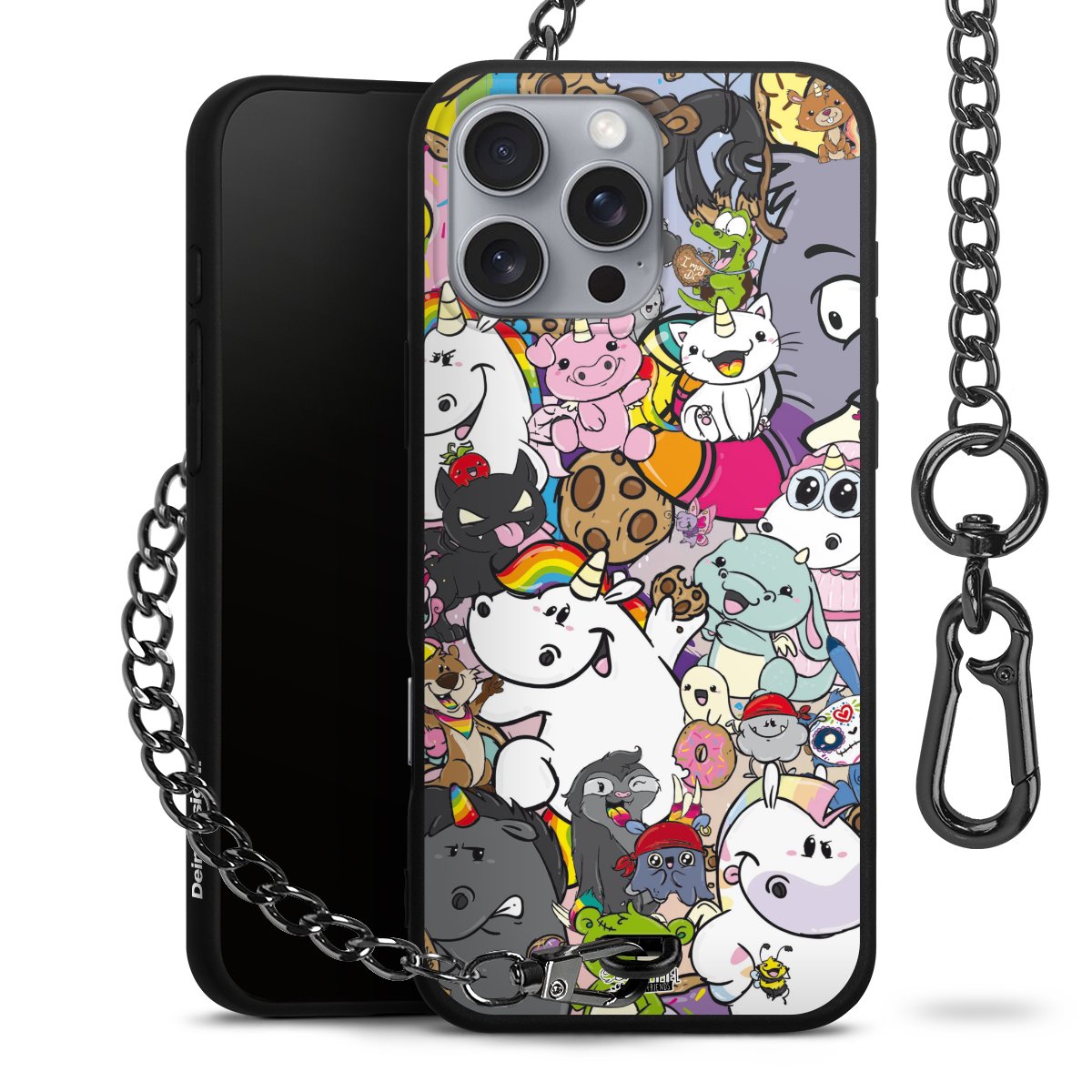 Die mattschwarze Silikon-Handyhülle besteht aus robustem TPU (thermoplastisches Polyurethan). Sie ist flexibel und schützt Dein Smartphone vor Stößen und Kratzern. Die Kette sowie der Karabinerhaken sind aus Metall in Gunmetal-Optik gefertigt. Für dieses Produkt kommen ausschließlich TÜV-geprüfte Materialien zum Einsatz.