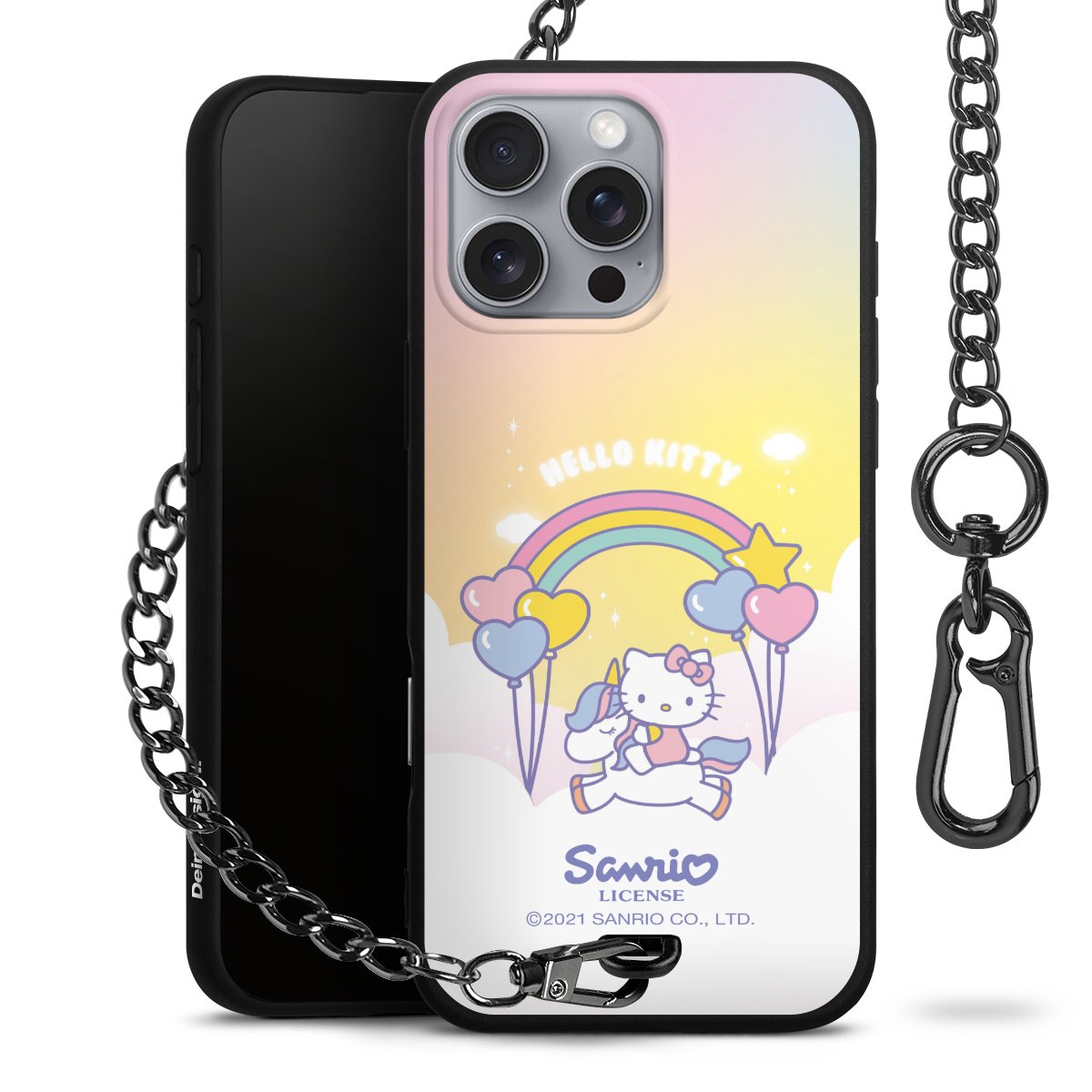 Die mattschwarze Silikon-Handyhülle besteht aus robustem TPU (thermoplastisches Polyurethan). Sie ist flexibel und schützt Dein Smartphone vor Stößen und Kratzern. Die Kette sowie der Karabinerhaken sind aus Metall in Gunmetal-Optik gefertigt. Für dieses Produkt kommen ausschließlich TÜV-geprüfte Materialien zum Einsatz.