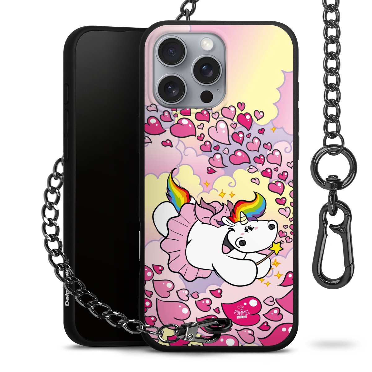 Die mattschwarze Silikon-Handyhülle besteht aus robustem TPU (thermoplastisches Polyurethan). Sie ist flexibel und schützt Dein Smartphone vor Stößen und Kratzern. Die Kette sowie der Karabinerhaken sind aus Metall in Gunmetal-Optik gefertigt. Für dieses Produkt kommen ausschließlich TÜV-geprüfte Materialien zum Einsatz.