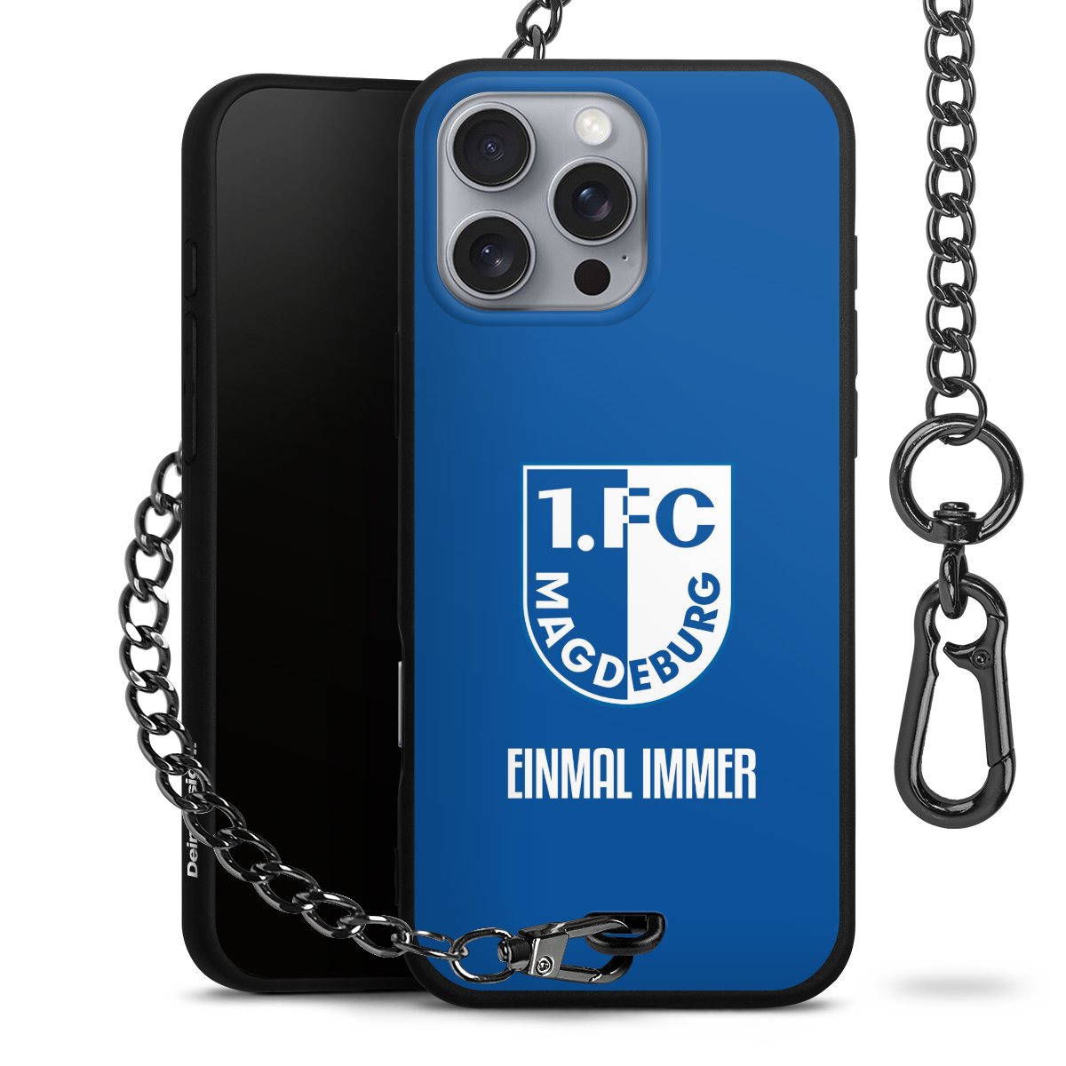 - Mattschwarze Handyhülle mit Metallkette