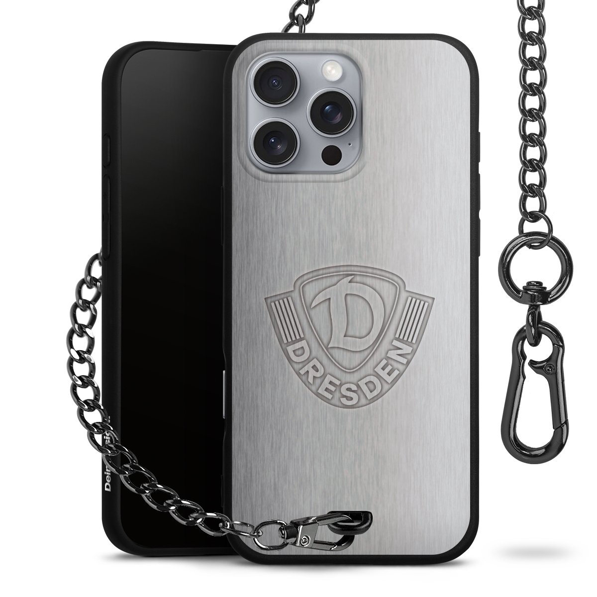 Die mattschwarze Silikon-Handyhülle besteht aus robustem TPU (thermoplastisches Polyurethan). Sie ist flexibel und schützt Dein Smartphone vor Stößen und Kratzern. Die Kette sowie der Karabinerhaken sind aus Metall in Gunmetal-Optik gefertigt. Für dieses Produkt kommen ausschließlich TÜV-geprüfte Materialien zum Einsatz.