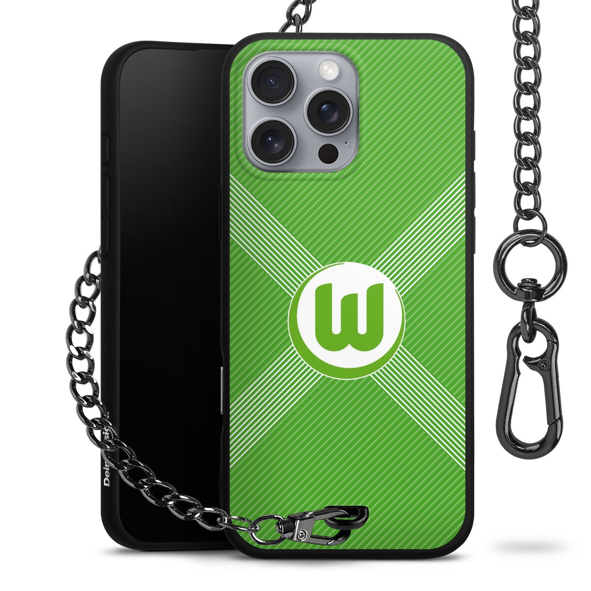 Die mattschwarze Silikon-Handyhülle besteht aus robustem TPU (thermoplastisches Polyurethan). Sie ist flexibel und schützt Dein Smartphone vor Stößen und Kratzern. Die Kette sowie der Karabinerhaken sind aus Metall in Gunmetal-Optik gefertigt. Für dieses Produkt kommen ausschließlich TÜV-geprüfte Materialien zum Einsatz.