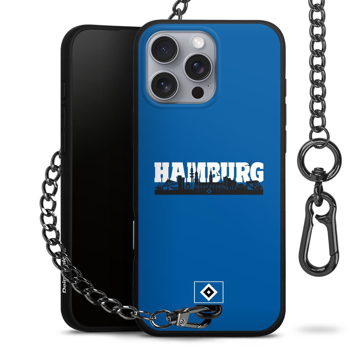 Die mattschwarze Silikon-Handyhülle besteht aus robustem TPU (thermoplastisches Polyurethan). Sie ist flexibel und schützt Dein Smartphone vor Stößen und Kratzern. Die Kette sowie der Karabinerhaken sind aus Metall in Gunmetal-Optik gefertigt. Für dieses Produkt kommen ausschließlich TÜV-geprüfte Materialien zum Einsatz.