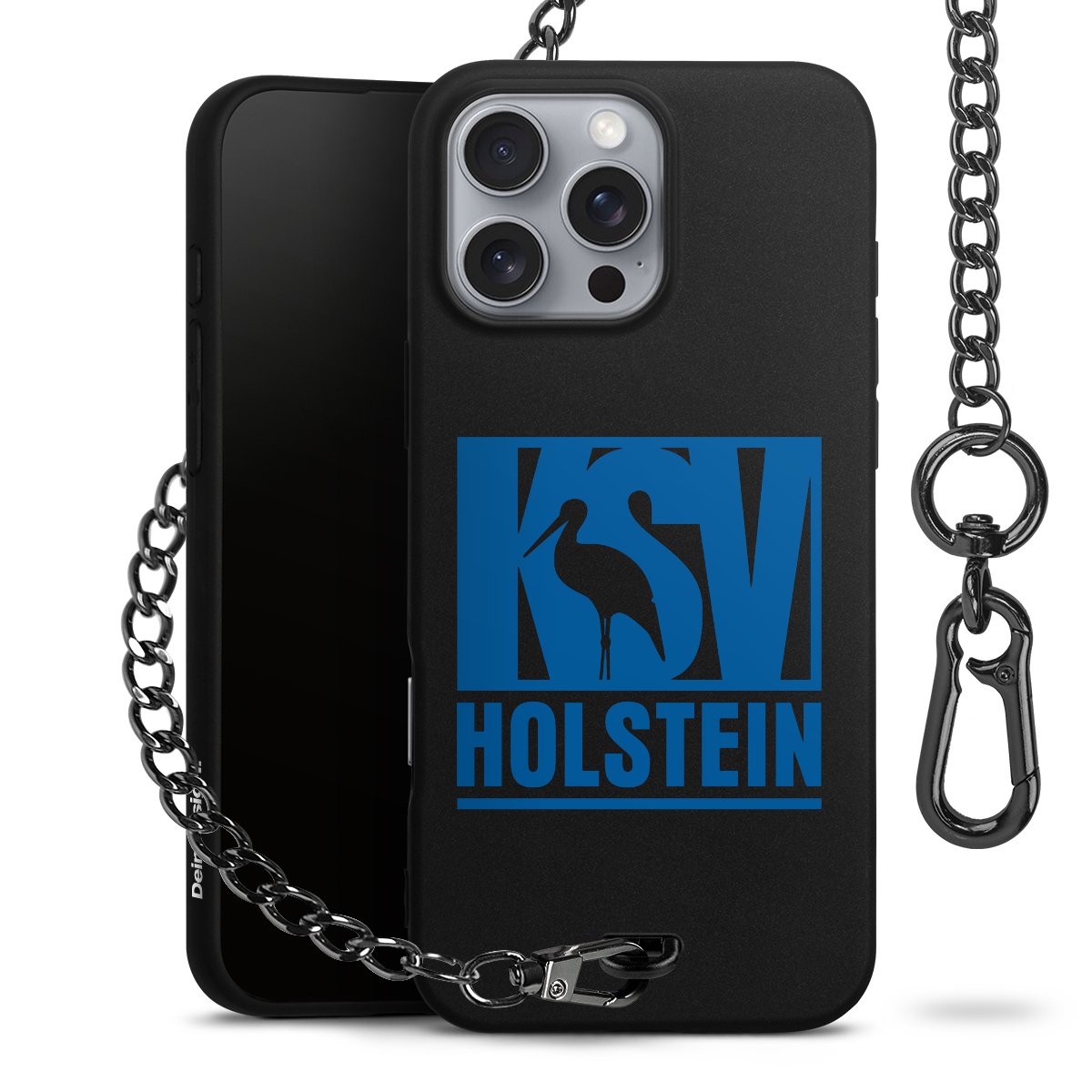 • Mattschwarze Handyhülle mit Metallkette