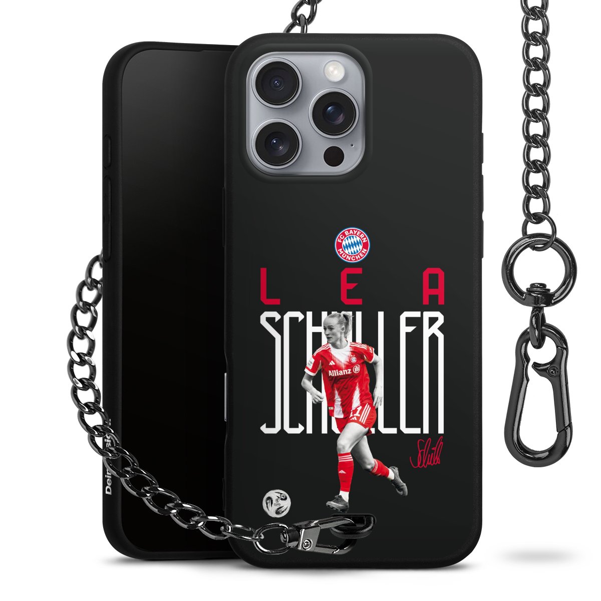 • Mattschwarze Handyhülle mit Metallkette