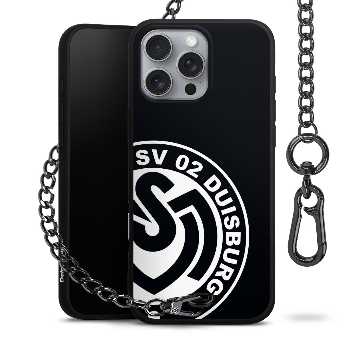 Die mattschwarze Silikon-Handyhülle besteht aus robustem TPU (thermoplastisches Polyurethan). Sie ist flexibel und schützt Dein Smartphone vor Stößen und Kratzern. Die Kette sowie der Karabinerhaken sind aus Metall in Gunmetal-Optik gefertigt. Für dieses Produkt kommen ausschließlich TÜV-geprüfte Materialien zum Einsatz.
