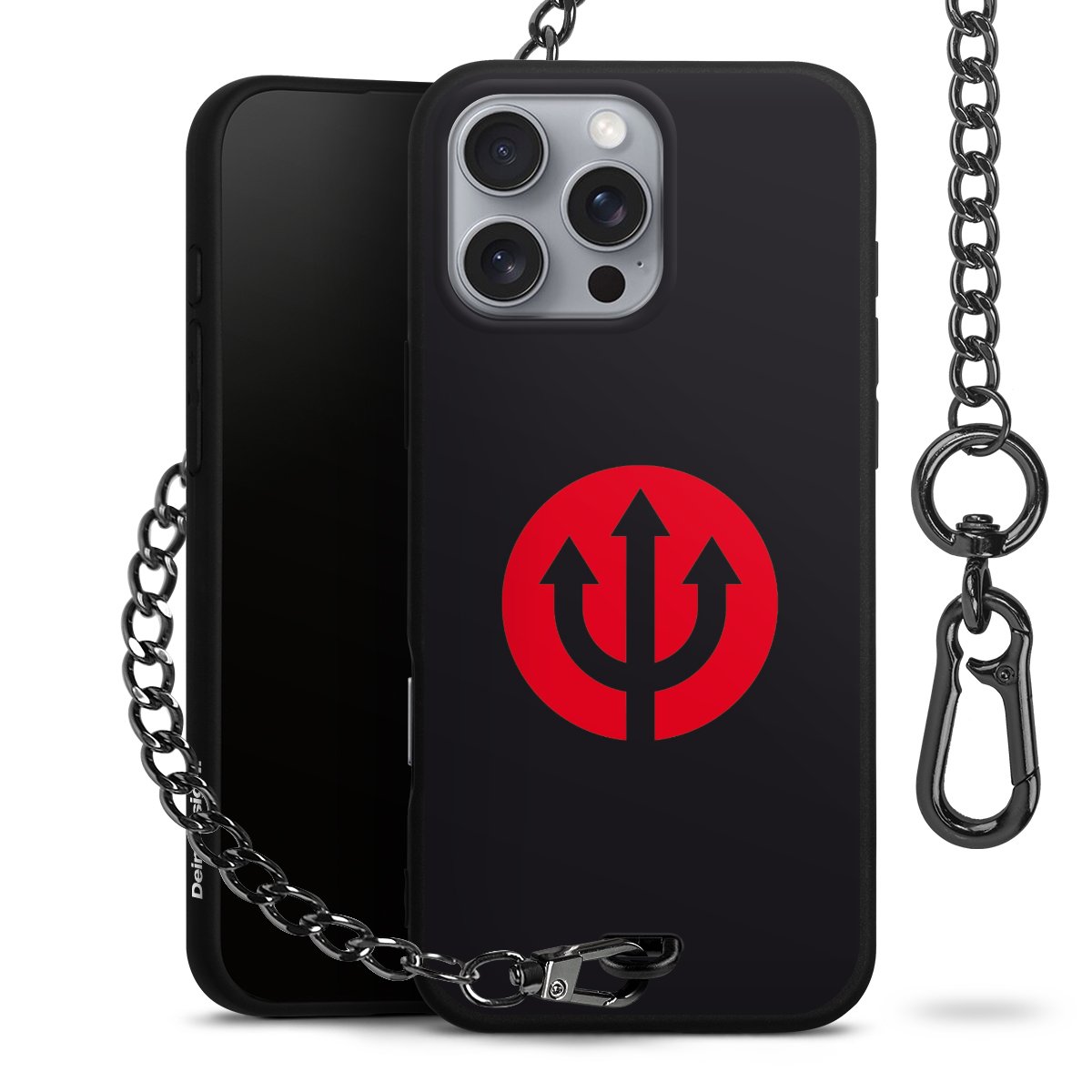 Die mattschwarze Silikon-Handyhülle besteht aus robustem TPU (thermoplastisches Polyurethan). Sie ist flexibel und schützt Dein Smartphone vor Stößen und Kratzern. Die Kette sowie der Karabinerhaken sind aus Metall in Gunmetal-Optik gefertigt. Für dieses Produkt kommen ausschließlich TÜV-geprüfte Materialien zum Einsatz.