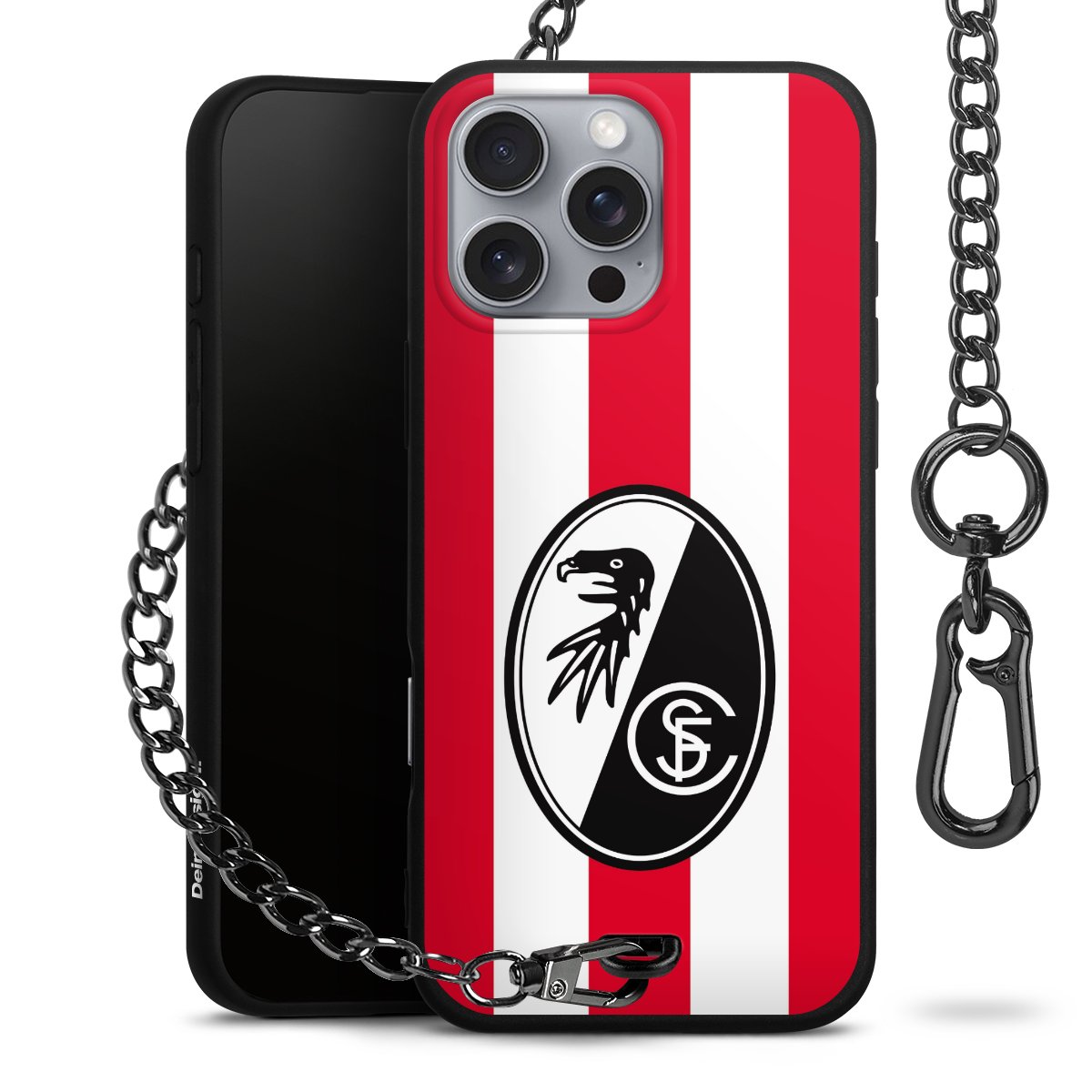 Bei DeinDesign kannst Du Dir eine individuelle SC-Freiburg-Handyhülle aussuchen, auf der das stilvolle schwarz-weiße Logo mit dem Greifenkopf zu sehen ist. Durch eine solche Hülle erhält Dein Smartphone ein unverkennbar individuelles Design. Der SC-Freiburg-Shop bietet lizensierte Fanartikel für alle Fans der Breisgau-Brasilianer.