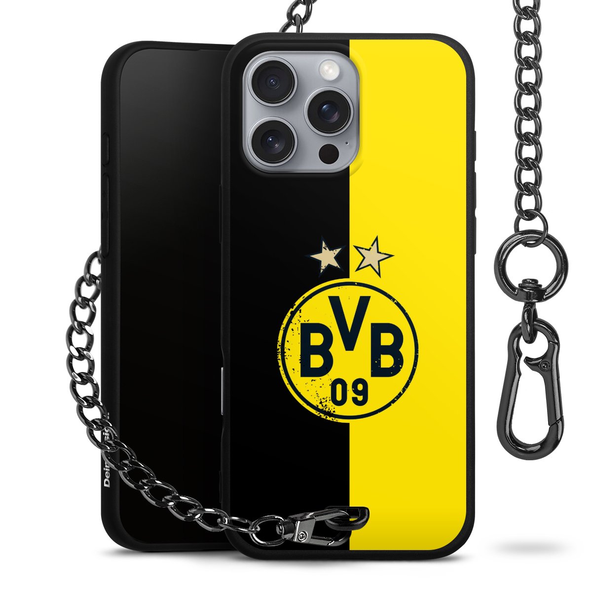 Die mattschwarze Silikon-Handyhülle besteht aus robustem TPU (thermoplastisches Polyurethan). Sie ist flexibel und schützt Dein Smartphone vor Stößen und Kratzern. Die Kette sowie der Karabinerhaken sind aus Metall in Gunmetal-Optik gefertigt. Für dieses Produkt kommen ausschließlich TÜV-geprüfte Materialien zum Einsatz.