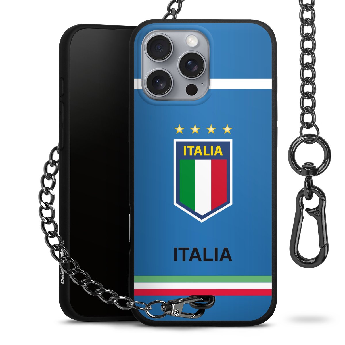 - Mattschwarze Handyhülle mit Metallkette