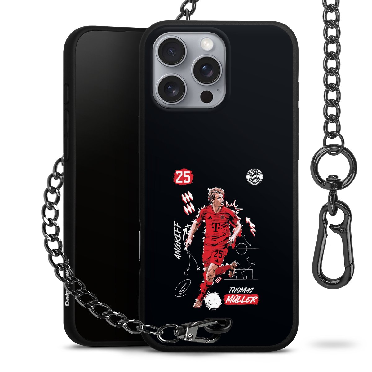 • Mattschwarze Handyhülle mit Metallkette