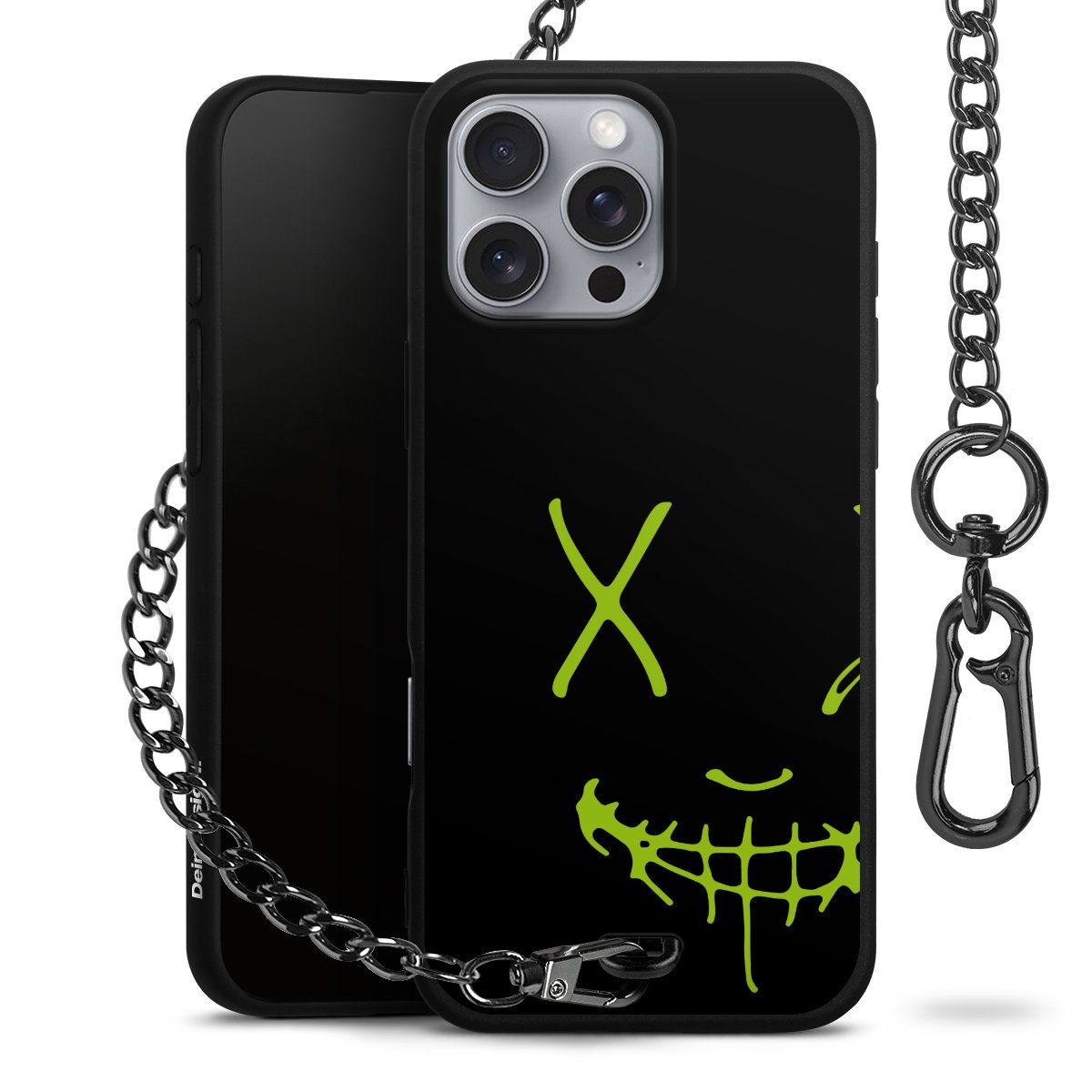 Die mattschwarze Silikon-Handyhülle besteht aus robustem TPU (thermoplastisches Polyurethan). Sie ist flexibel und schützt Dein Smartphone vor Stößen und Kratzern. Die Kette sowie der Karabinerhaken sind aus Metall in Gunmetal-Optik gefertigt. Für dieses Produkt kommen ausschließlich TÜV-geprüfte Materialien zum Einsatz.