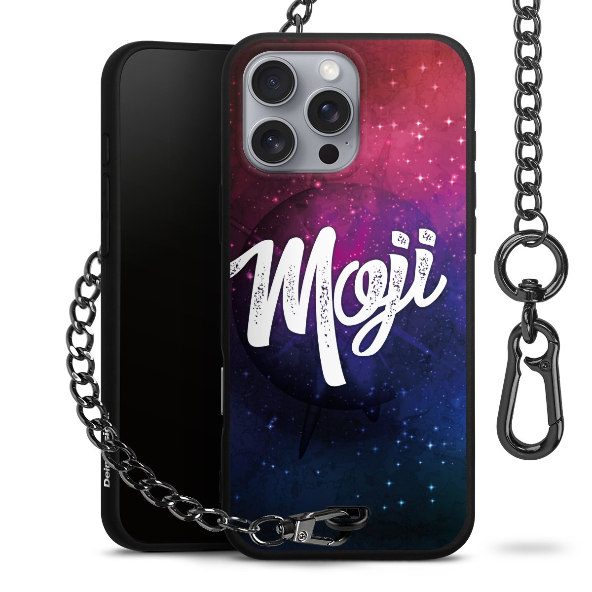• Mattschwarze Handyhülle mit Metallkette
