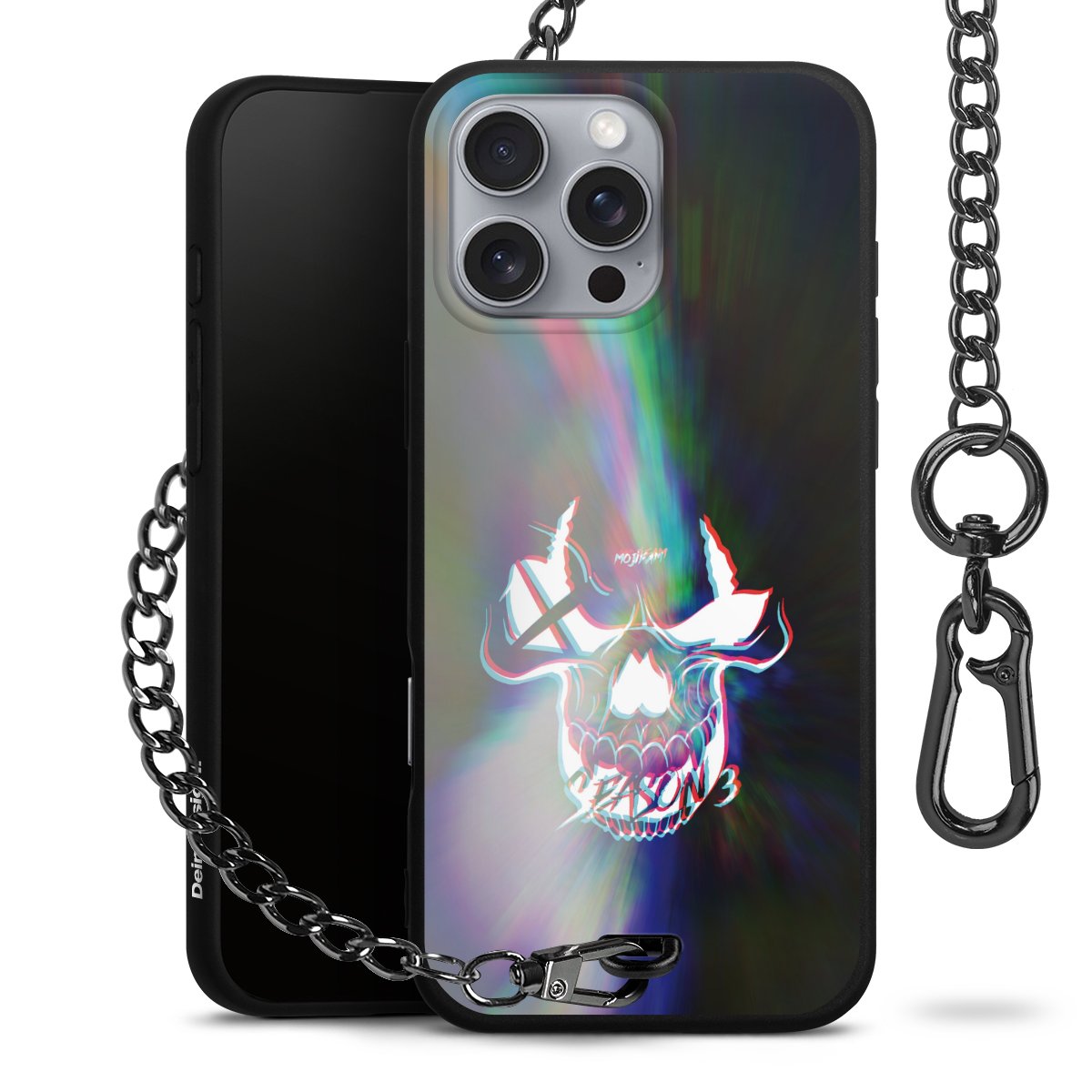 • Mattschwarze Handyhülle mit Metallkette