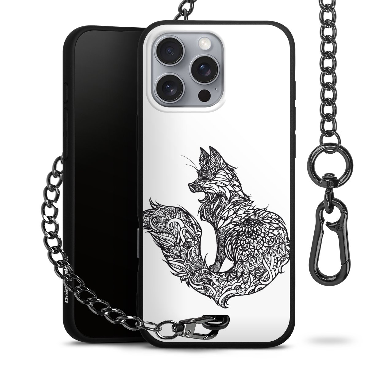 - Mattschwarze Handyhülle mit Metallkette