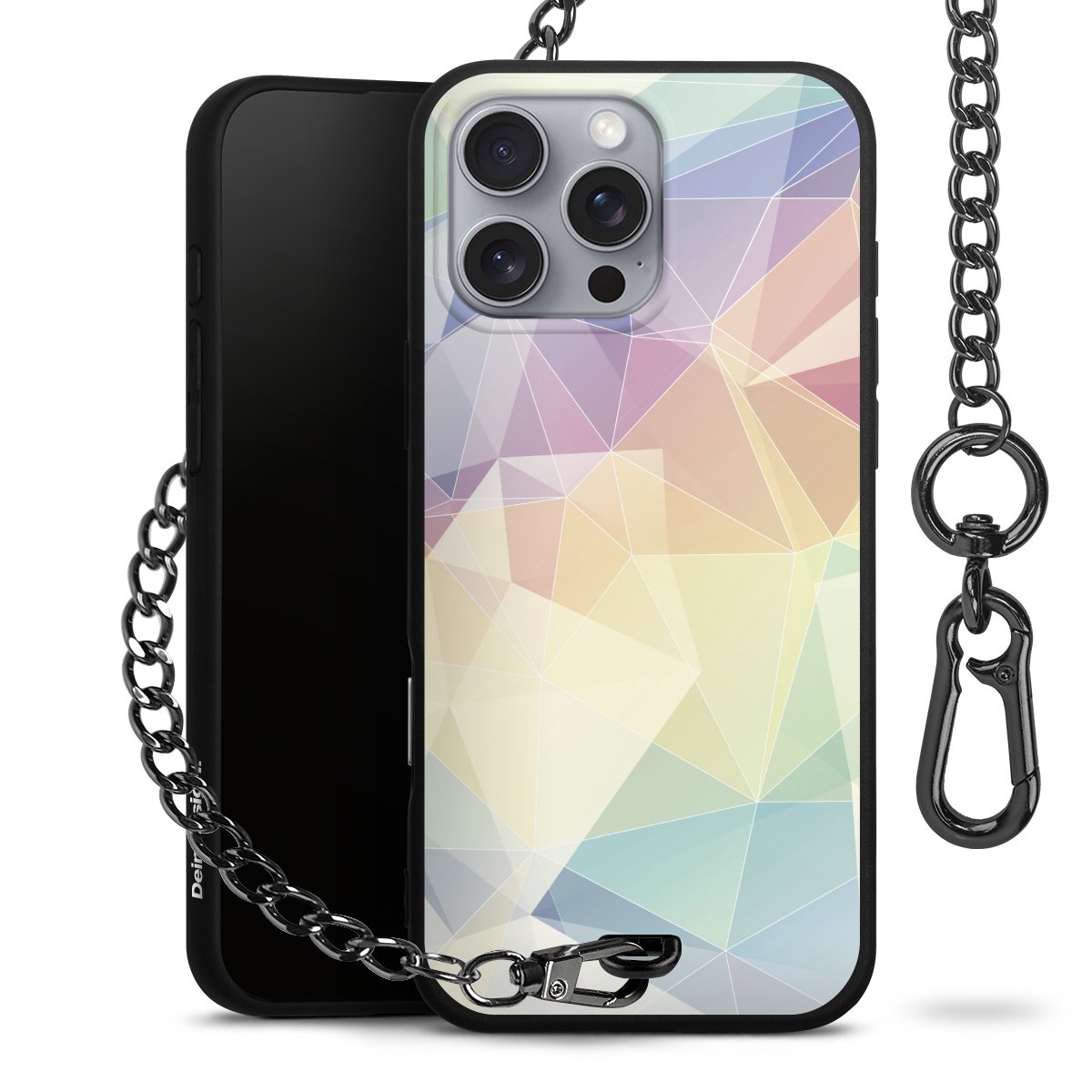 - Mattschwarze Handyhülle mit Metallkette