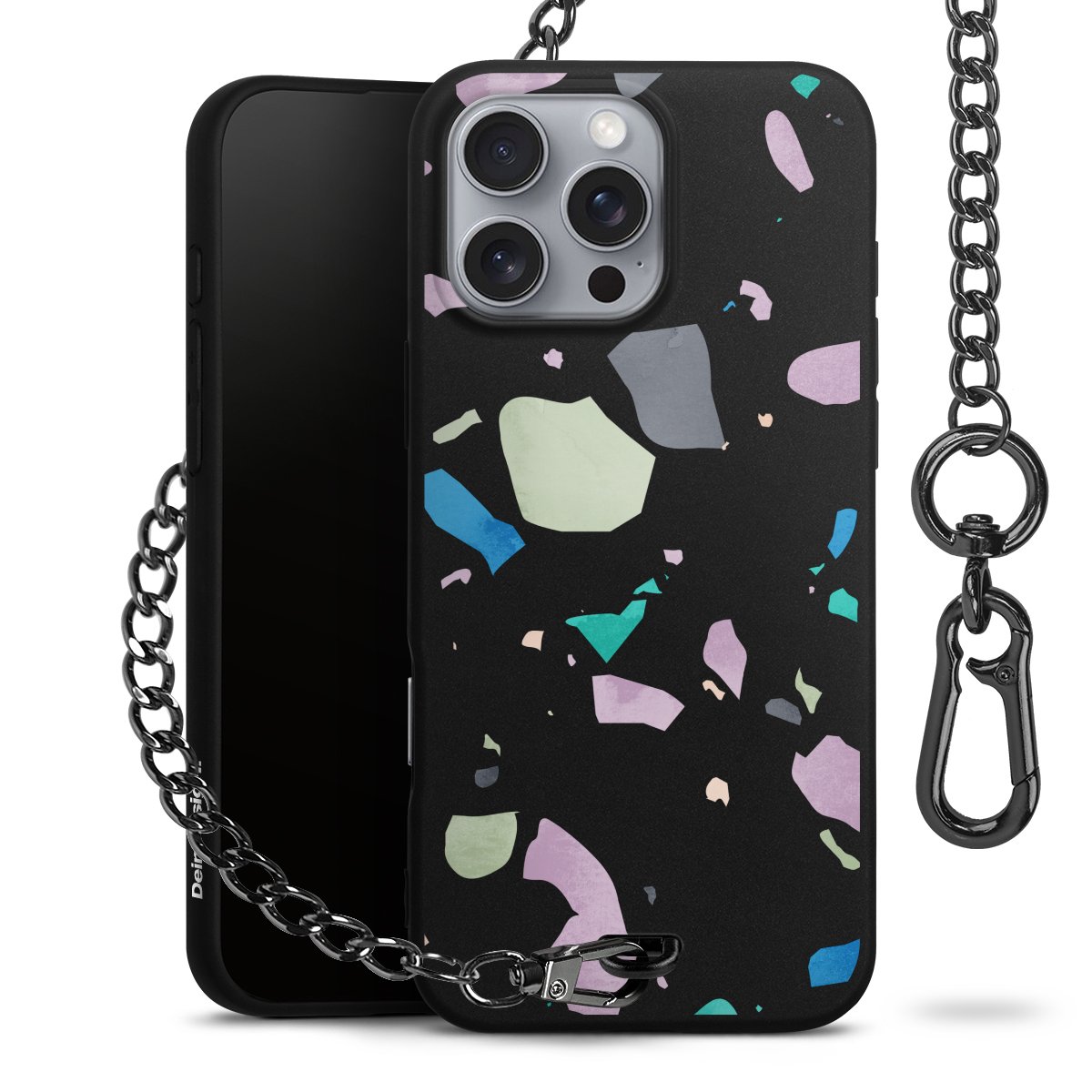 • Mattschwarze Handyhülle mit Metallkette