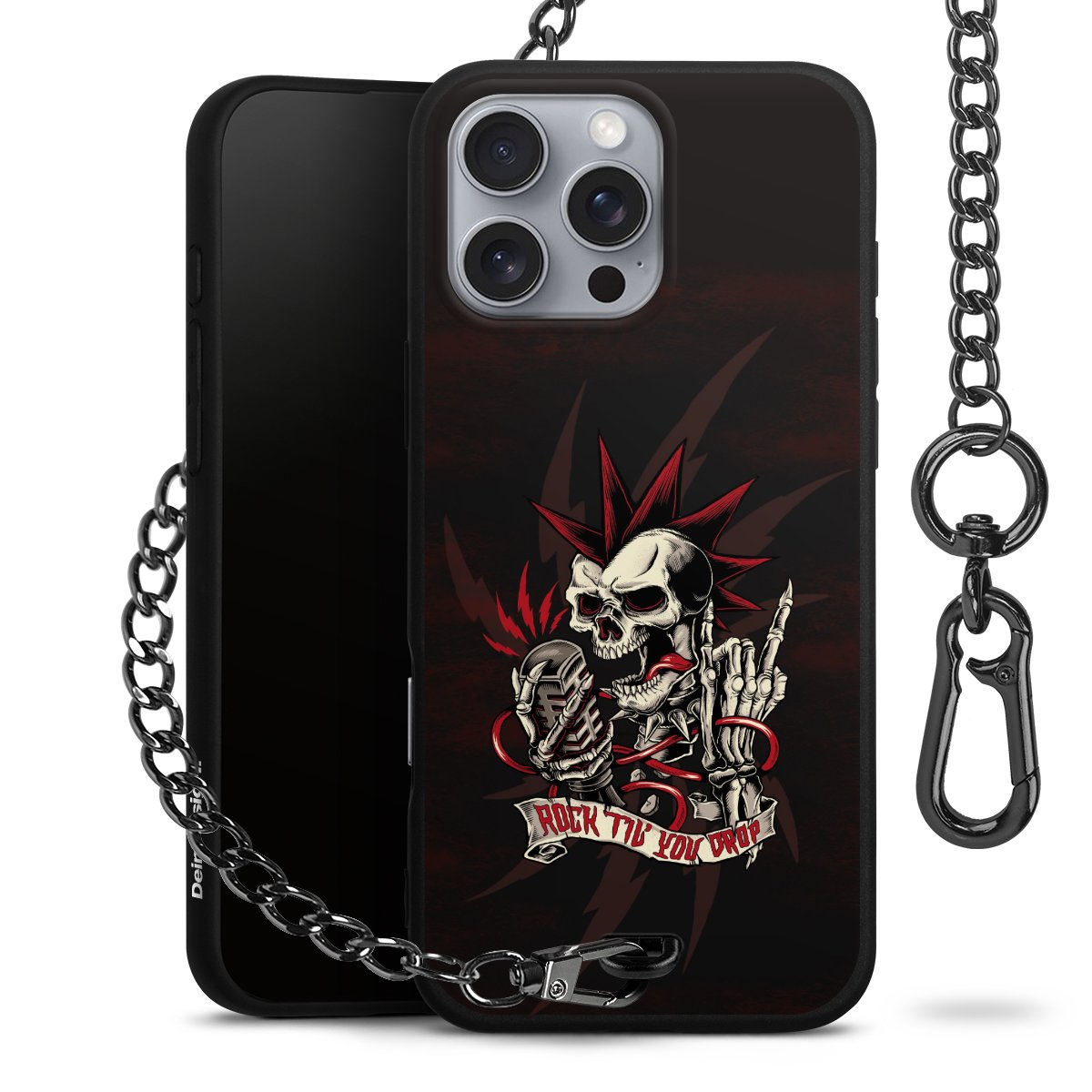 Die mattschwarze Silikon-Handyhülle besteht aus robustem TPU (thermoplastisches Polyurethan). Sie ist flexibel und schützt Dein Smartphone vor Stößen und Kratzern. Die Kette sowie der Karabinerhaken sind aus Metall in Gunmetal-Optik gefertigt. Für dieses Produkt kommen ausschließlich TÜV-geprüfte Materialien zum Einsatz.
