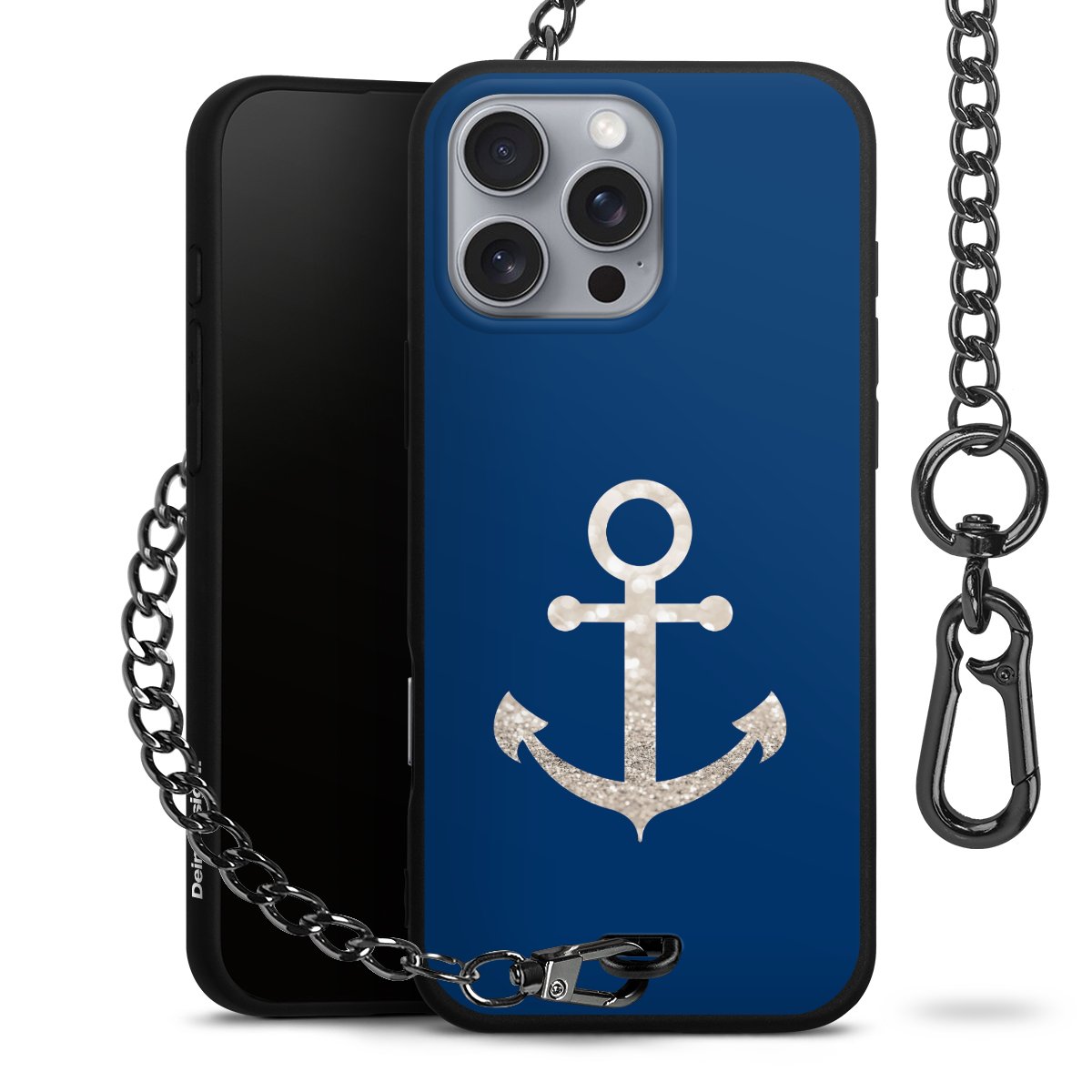 - Mattschwarze Handyhülle mit Metallkette