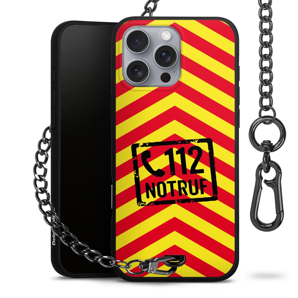 Die mattschwarze Silikon-Handyhülle besteht aus robustem TPU (thermoplastisches Polyurethan). Sie ist flexibel und schützt Dein Smartphone vor Stößen und Kratzern. Die Kette sowie der Karabinerhaken sind aus Metall in Gunmetal-Optik gefertigt. Für dieses Produkt kommen ausschließlich TÜV-geprüfte Materialien zum Einsatz.