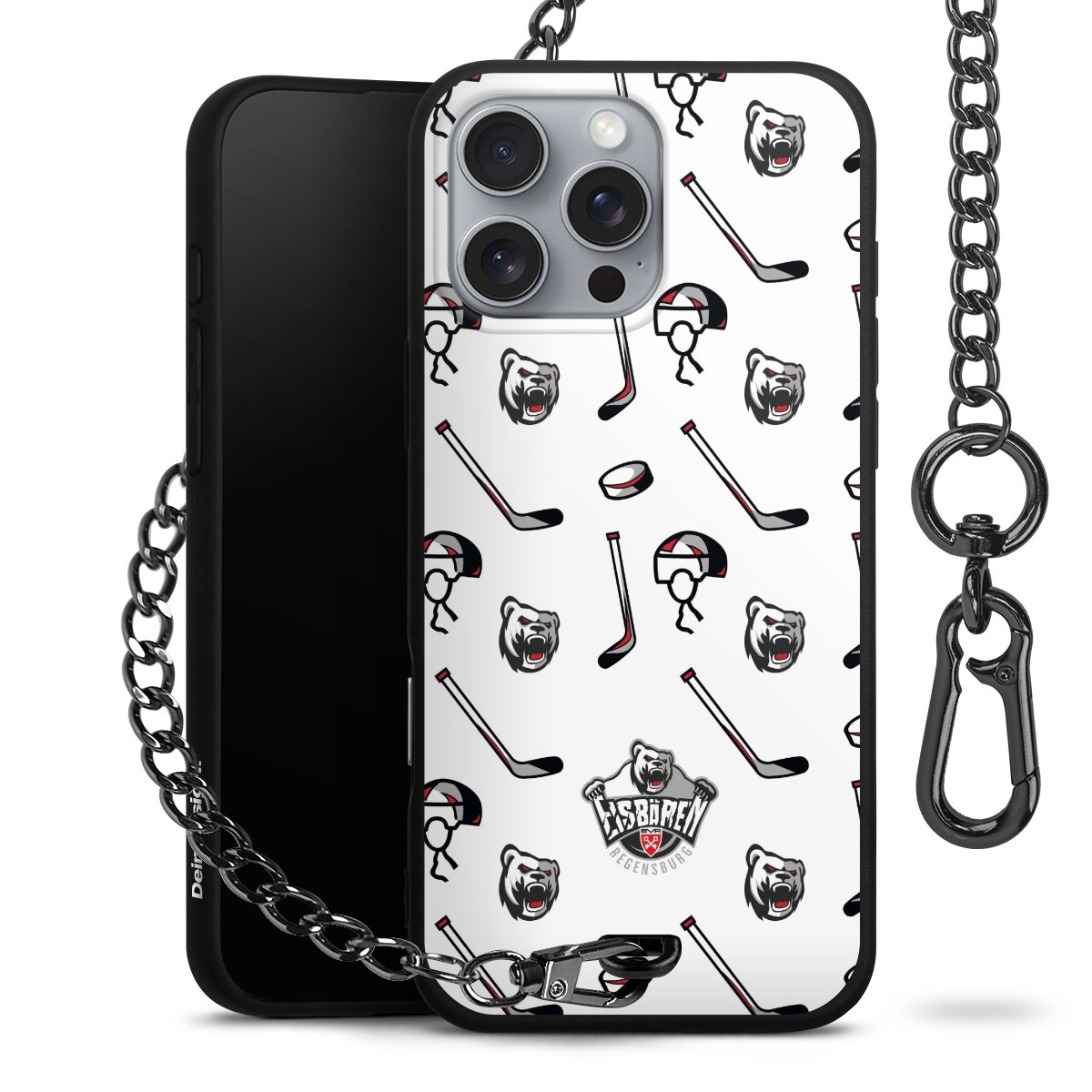 Die mattschwarze Silikon-Handyhülle besteht aus robustem TPU (thermoplastisches Polyurethan). Sie ist flexibel und schützt Dein Smartphone vor Stößen und Kratzern. Die Kette sowie der Karabinerhaken sind aus Metall in Gunmetal-Optik gefertigt. Für dieses Produkt kommen ausschließlich TÜV-geprüfte Materialien zum Einsatz.