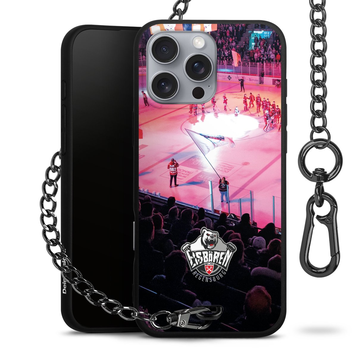 Die mattschwarze Silikon-Handyhülle besteht aus robustem TPU (thermoplastisches Polyurethan). Sie ist flexibel und schützt Dein Smartphone vor Stößen und Kratzern. Die Kette sowie der Karabinerhaken sind aus Metall in Gunmetal-Optik gefertigt. Für dieses Produkt kommen ausschließlich TÜV-geprüfte Materialien zum Einsatz.