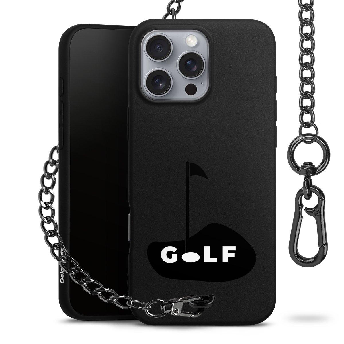 • Mattschwarze Handyhülle mit Metallkette