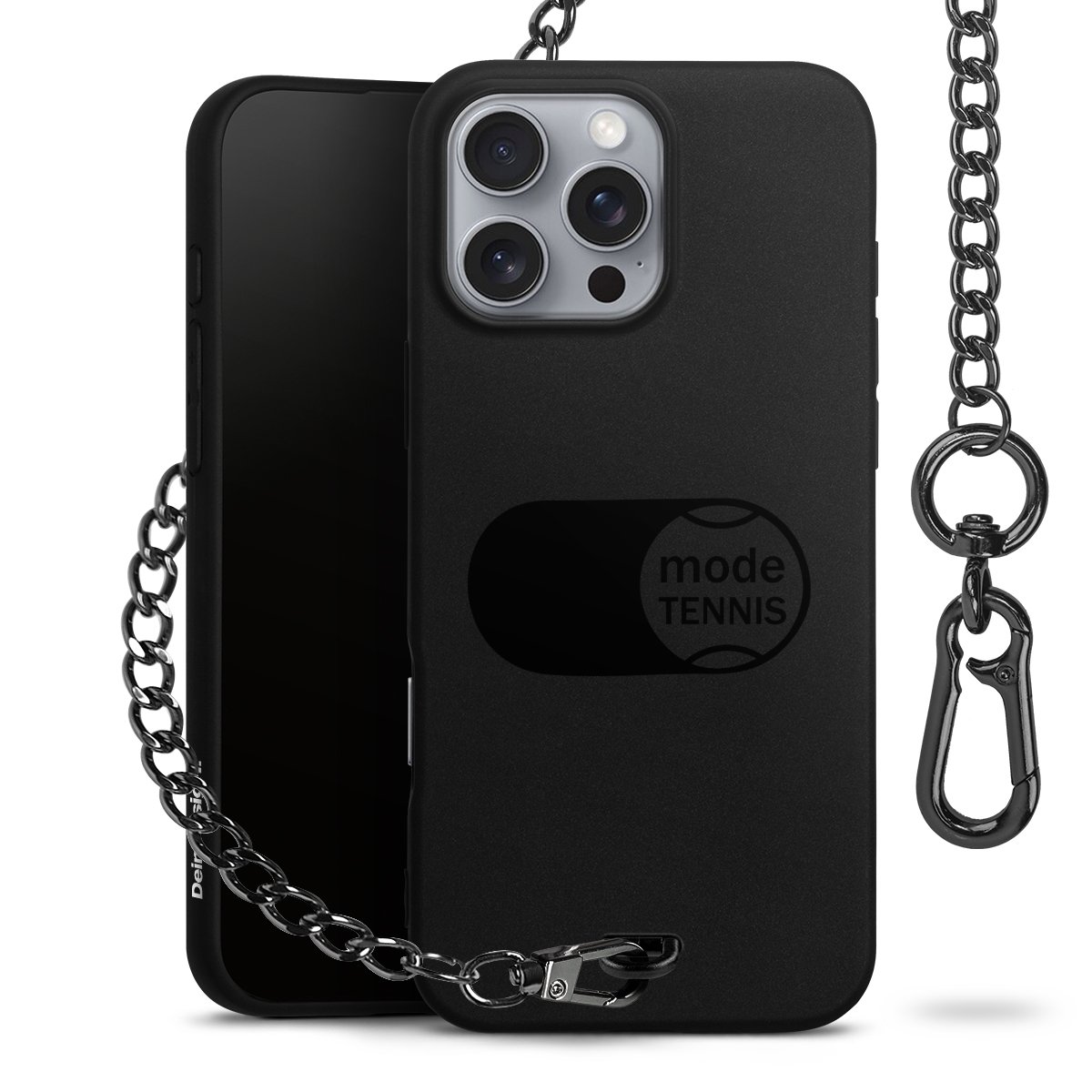 • Mattschwarze Handyhülle mit Metallkette