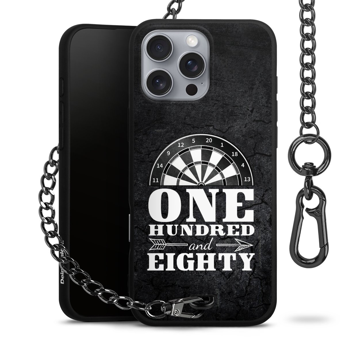 - Mattschwarze Handyhülle mit Metallkette