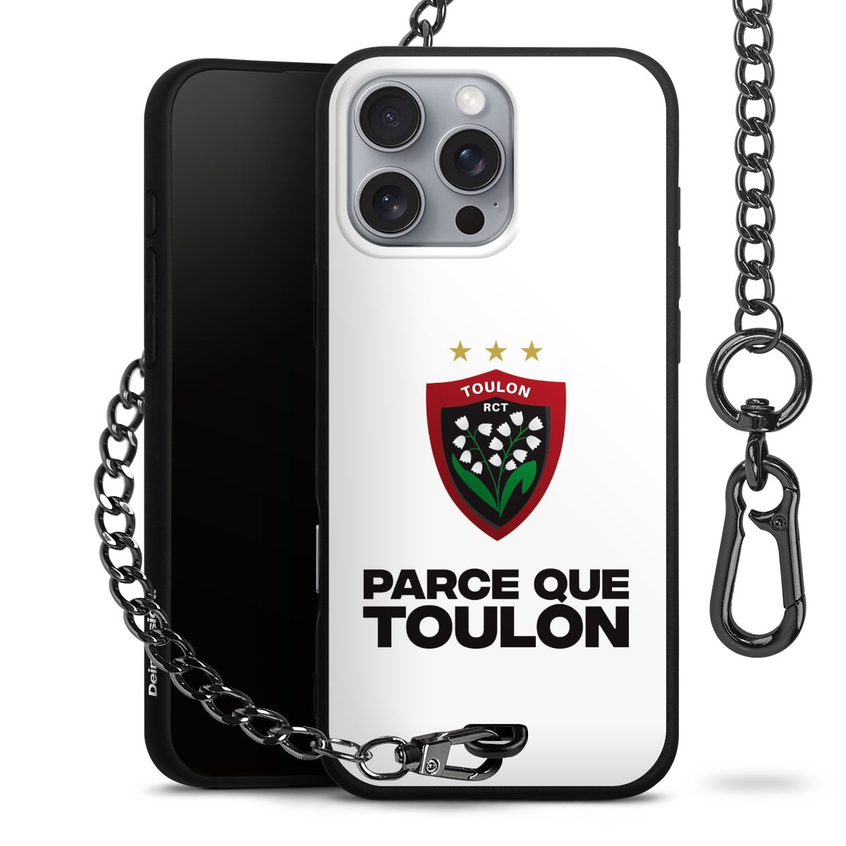 - Mattschwarze Handyhülle mit Metallkette