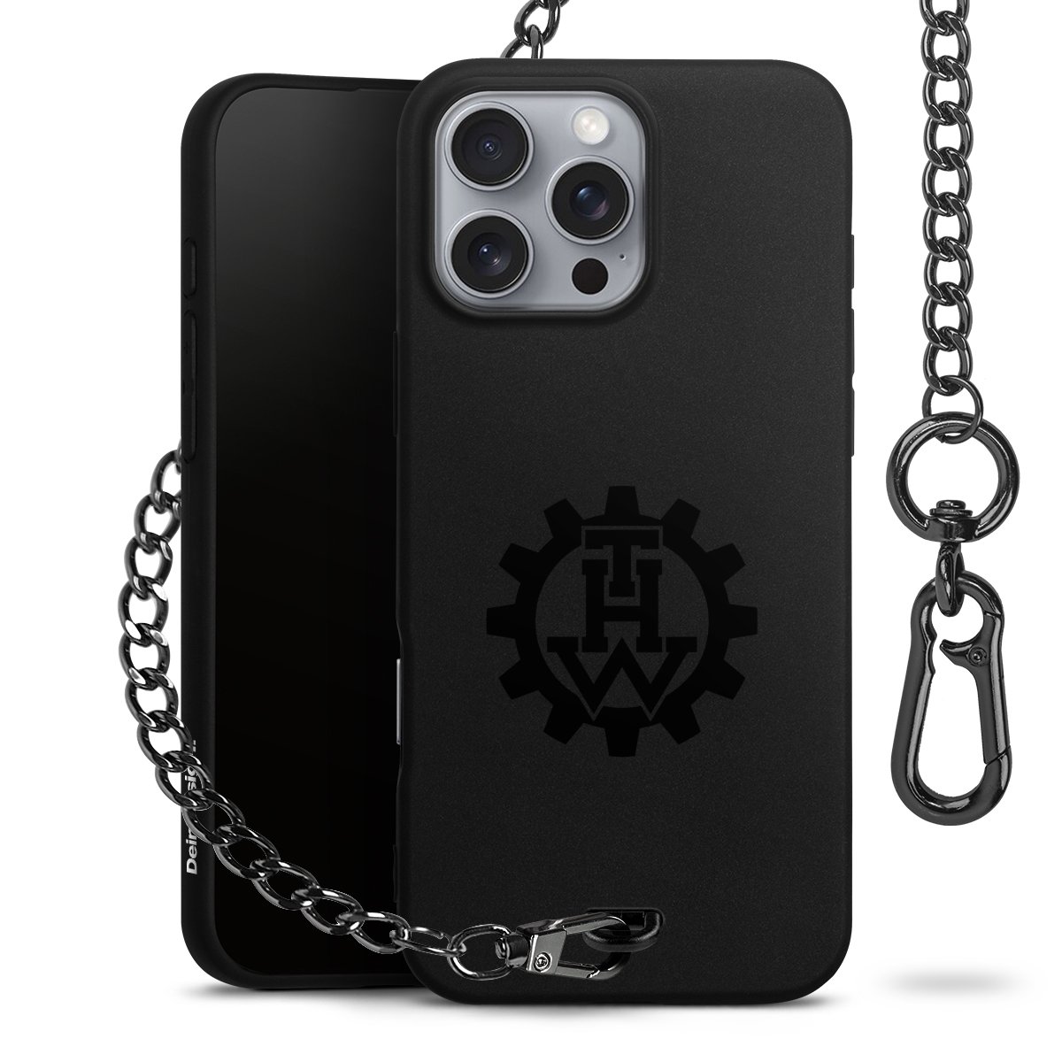 • Mattschwarze Handyhülle mit Metallkette