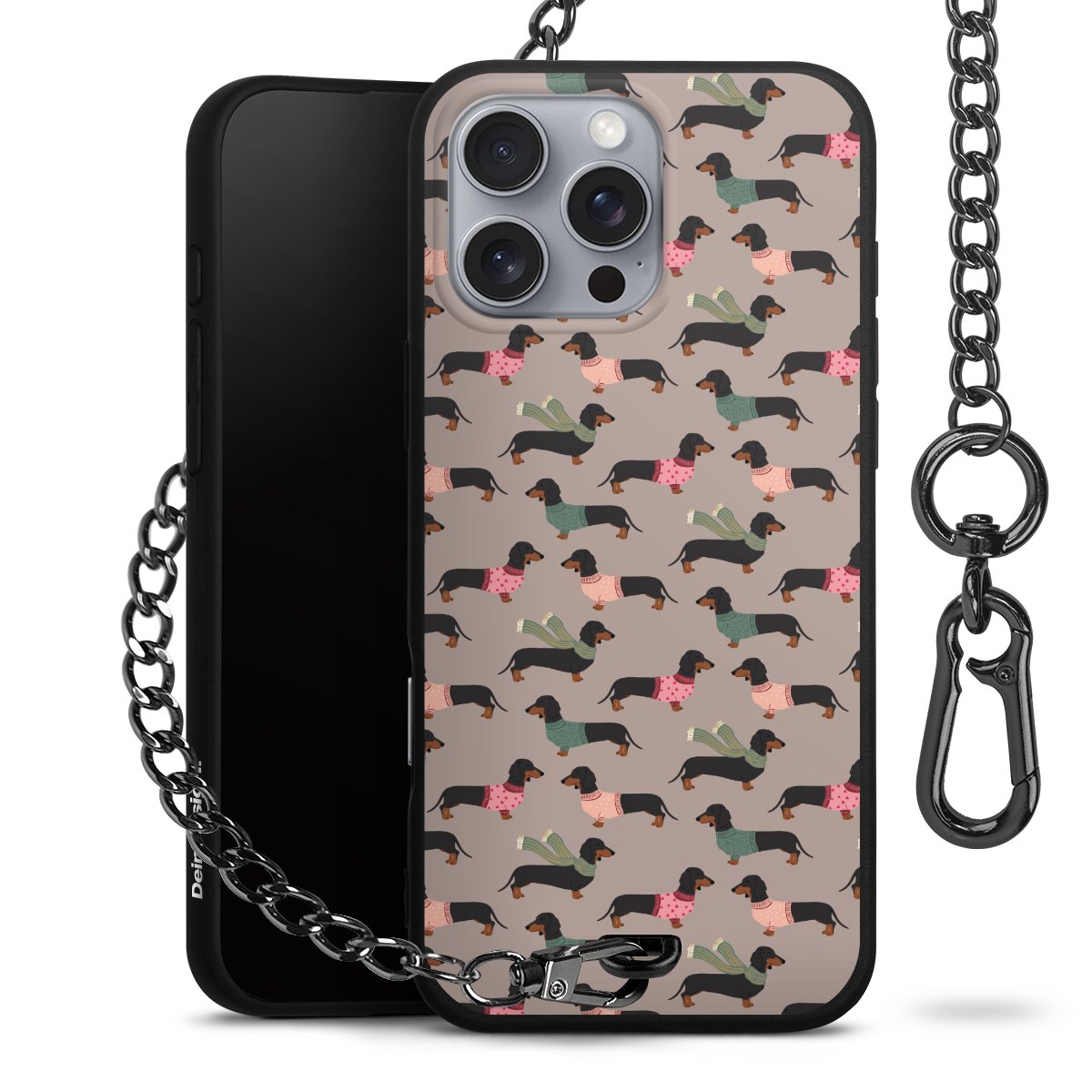 • Mattschwarze Handyhülle mit Metallkette