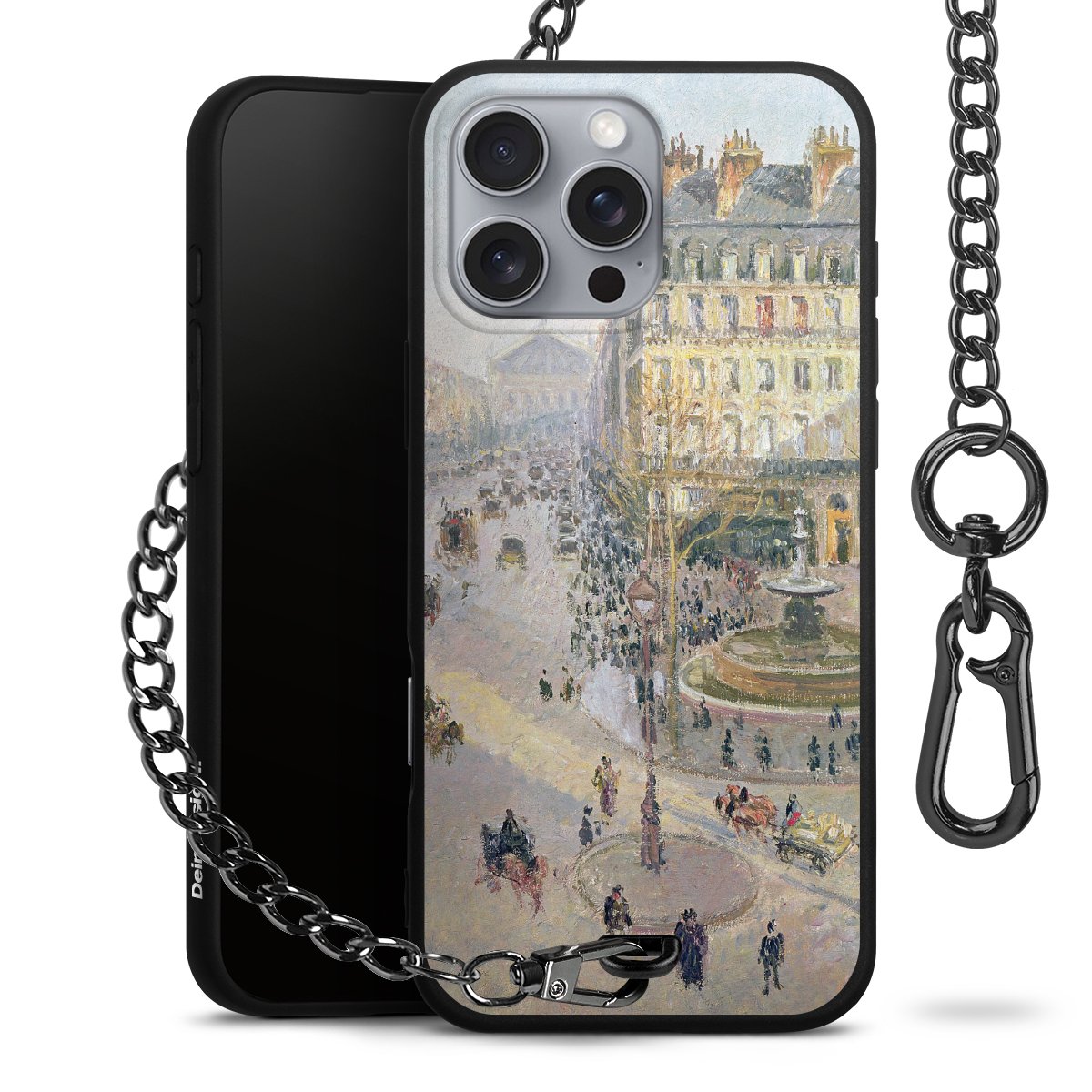 • Mattschwarze Handyhülle mit Metallkette