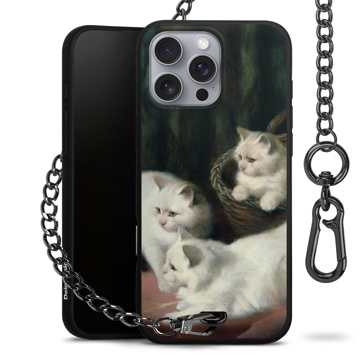 Die mattschwarze Silikon-Handyhülle besteht aus robustem TPU (thermoplastisches Polyurethan). Sie ist flexibel und schützt Dein Smartphone vor Stößen und Kratzern. Die Kette sowie der Karabinerhaken sind aus Metall in Gunmetal-Optik gefertigt. Für dieses Produkt kommen ausschließlich TÜV-geprüfte Materialien zum Einsatz.