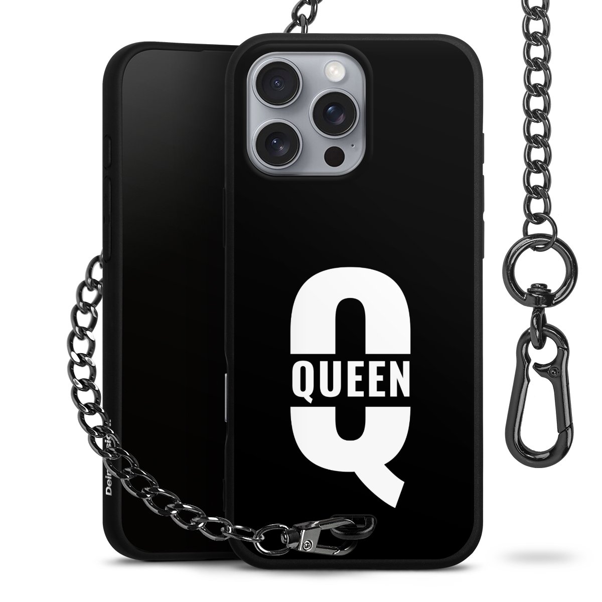 - Mattschwarze Handyhülle mit Metallkette