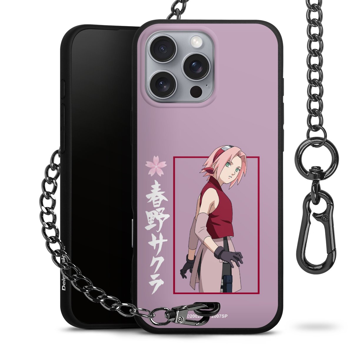 • Mattschwarze Handyhülle mit Metallkette