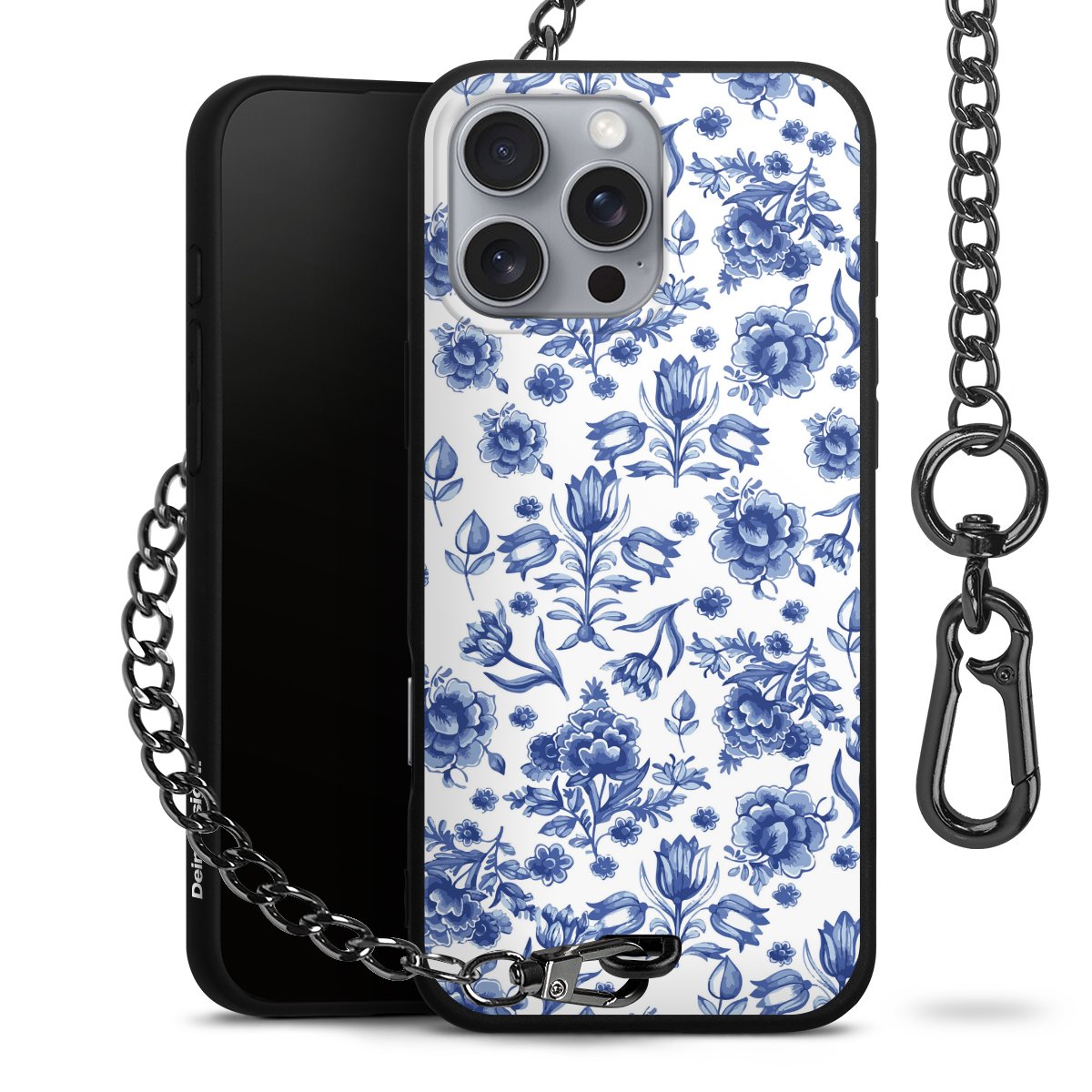 - Mattschwarze Handyhülle mit Metallkette